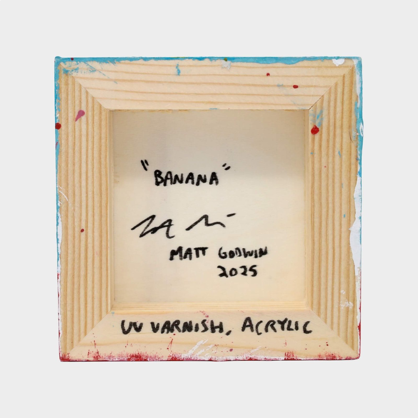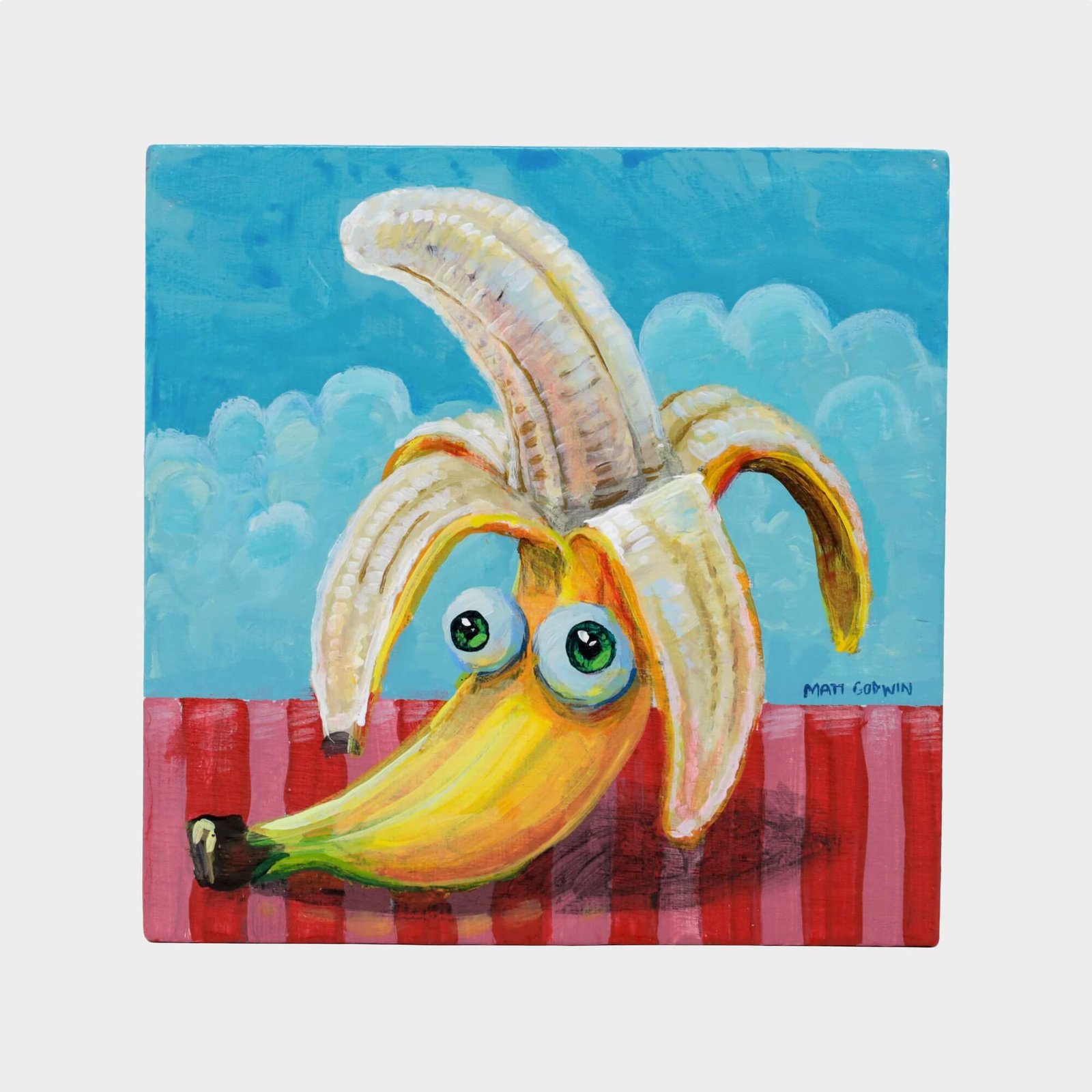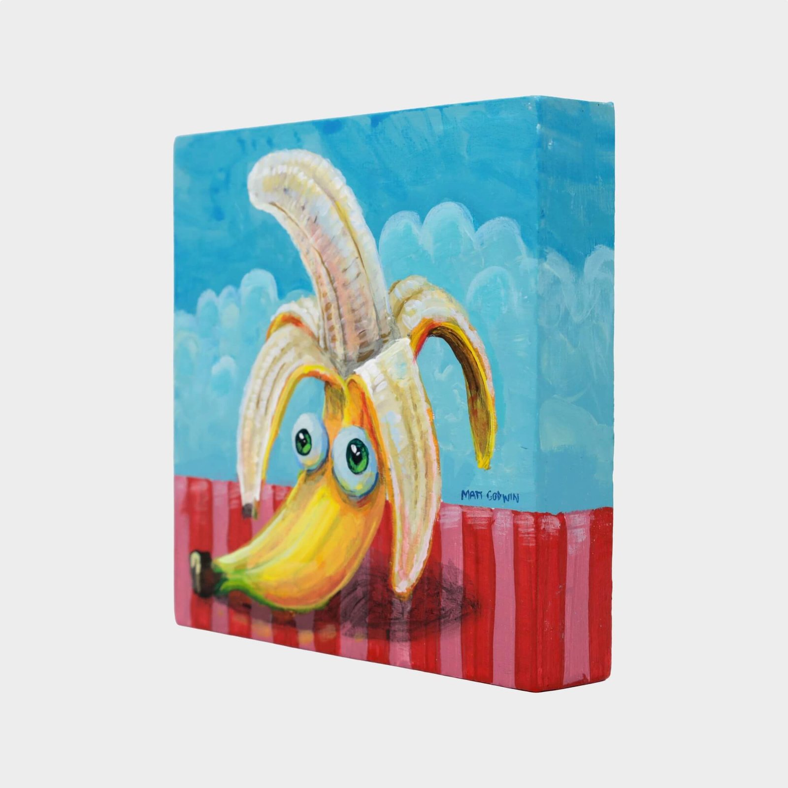 “Banana” original acrylic painting on wood by Matt Godwin 4″x4″