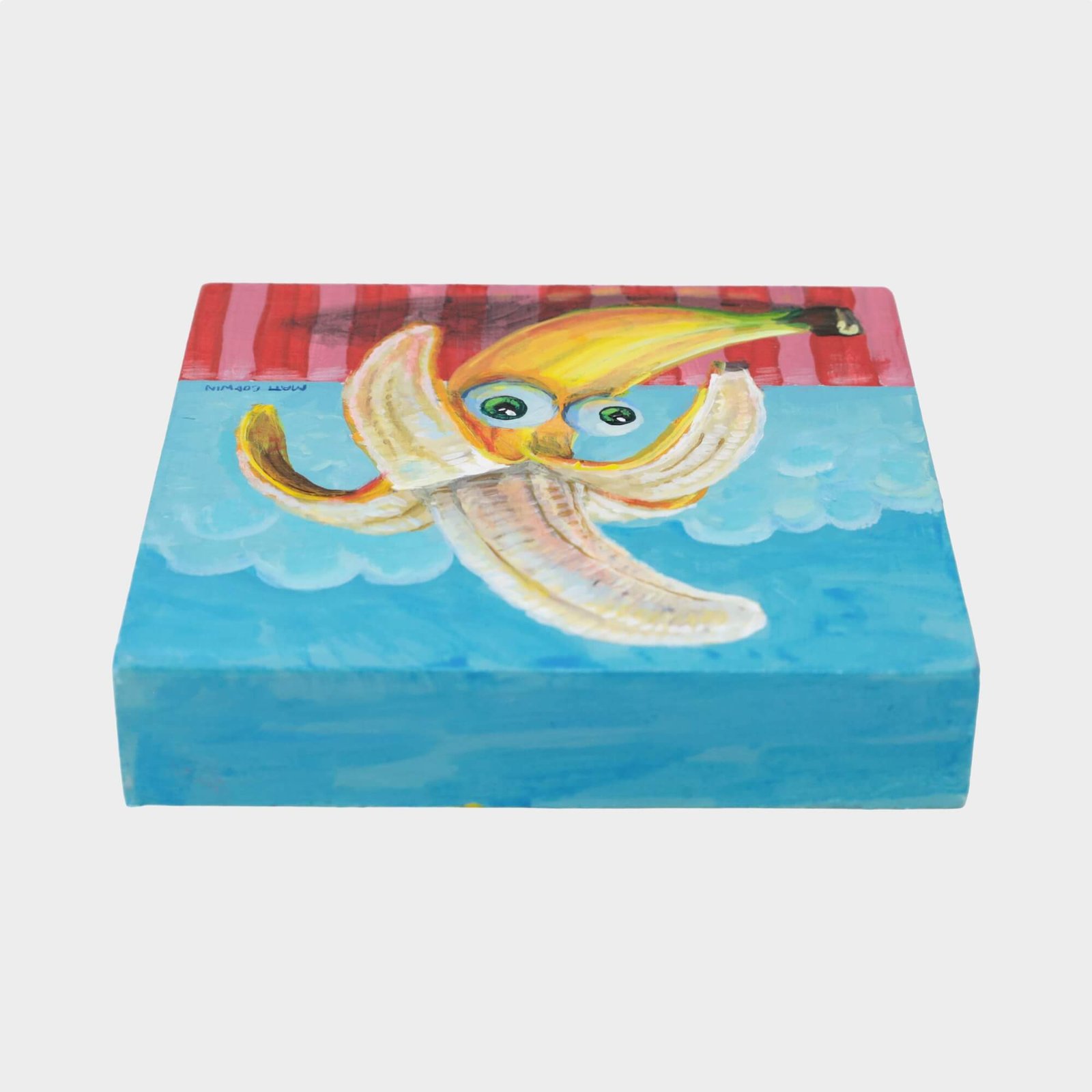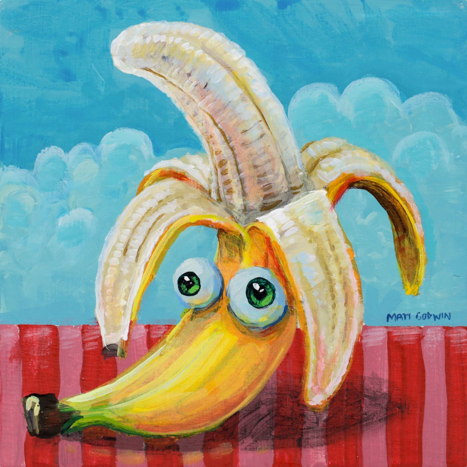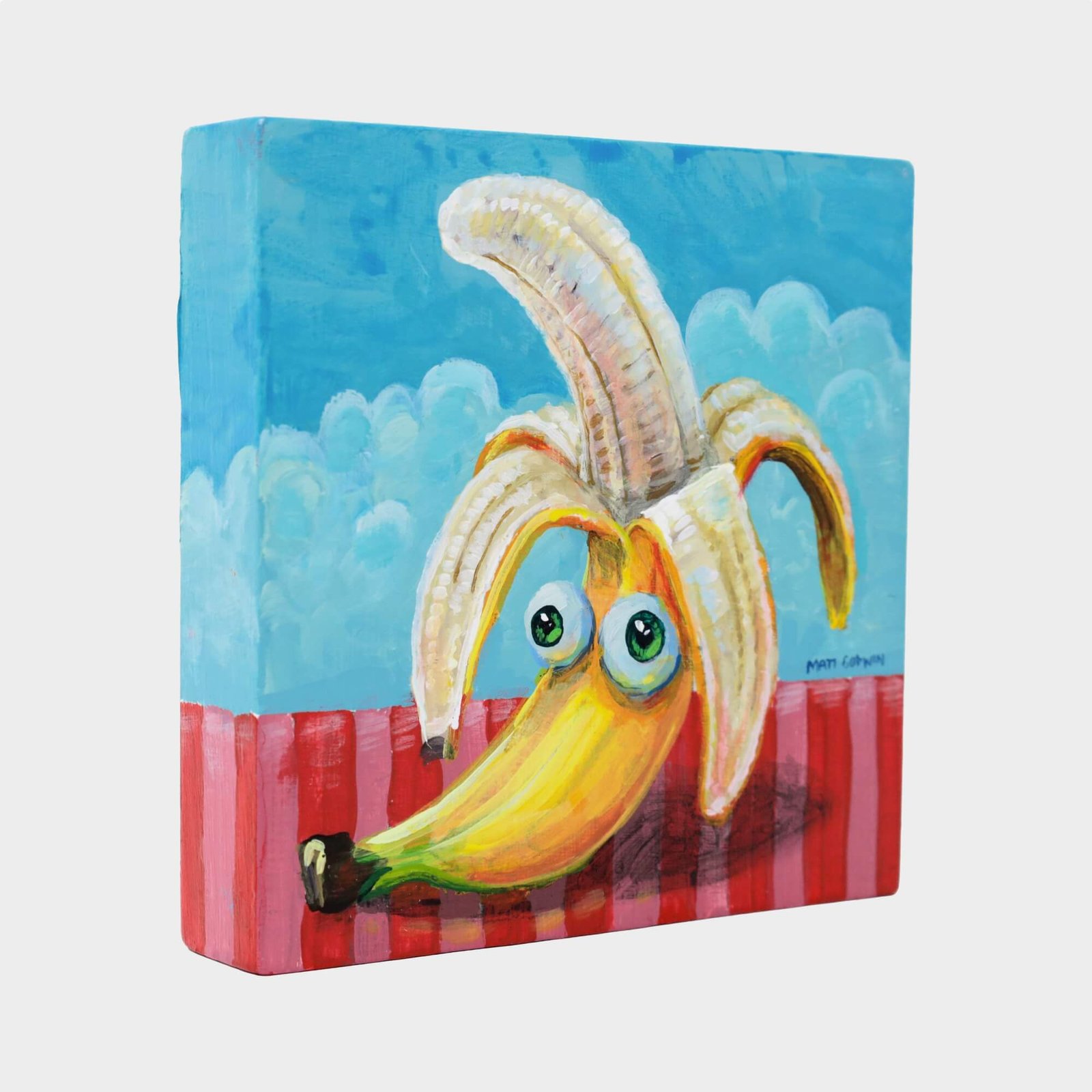 “Banana” original acrylic painting on wood by Matt Godwin 4″x4″