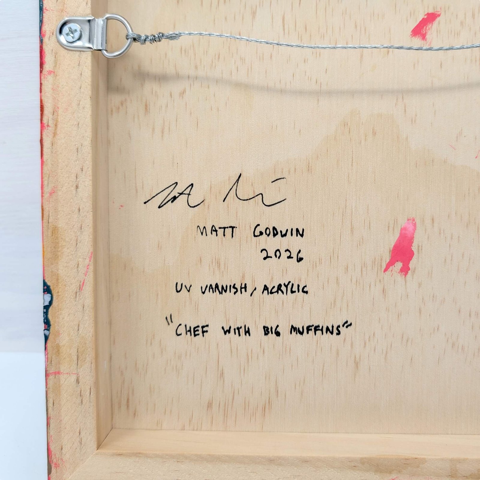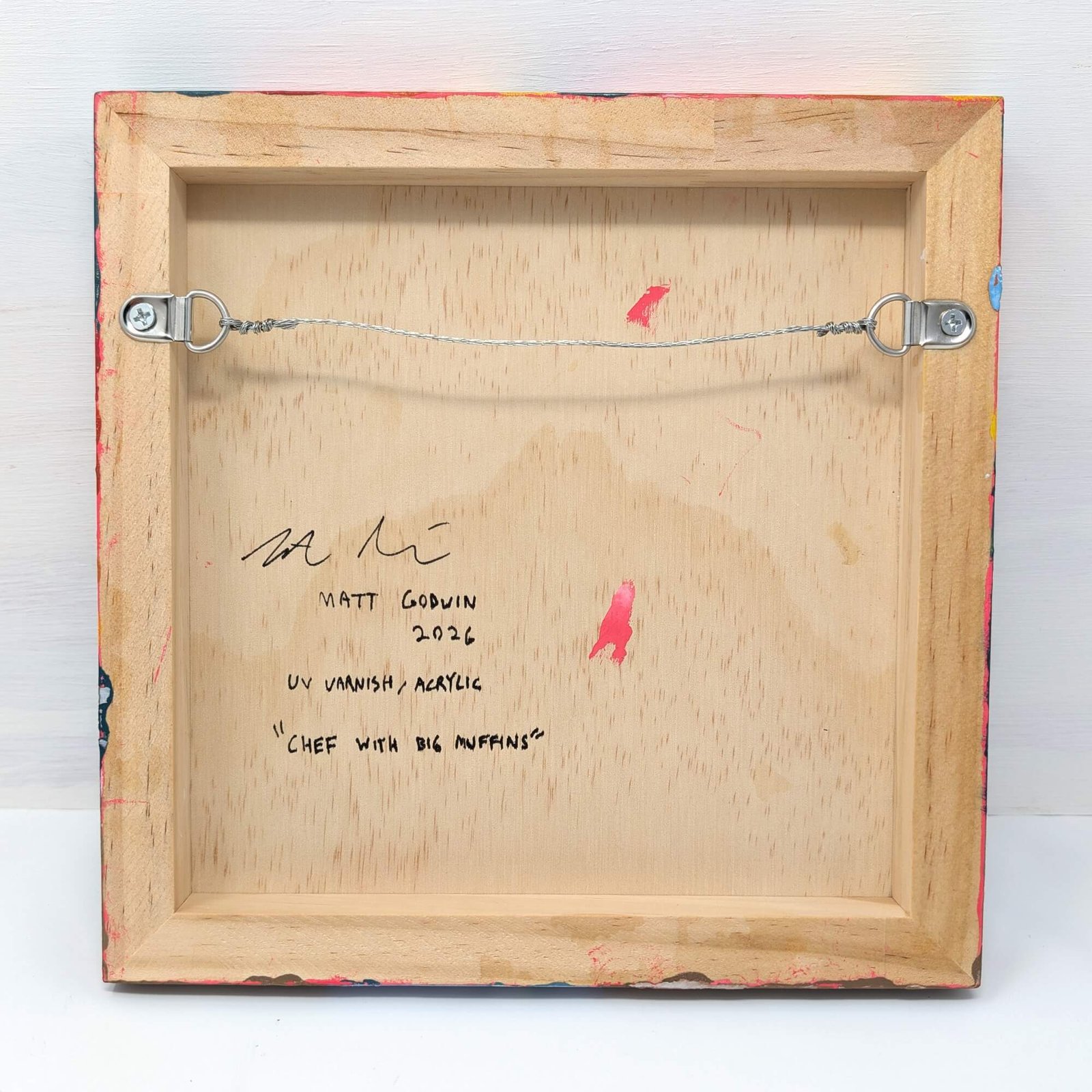 “Chef With Big Muffins” original acrylic painting on wood by Matt Godwin 8″x8″