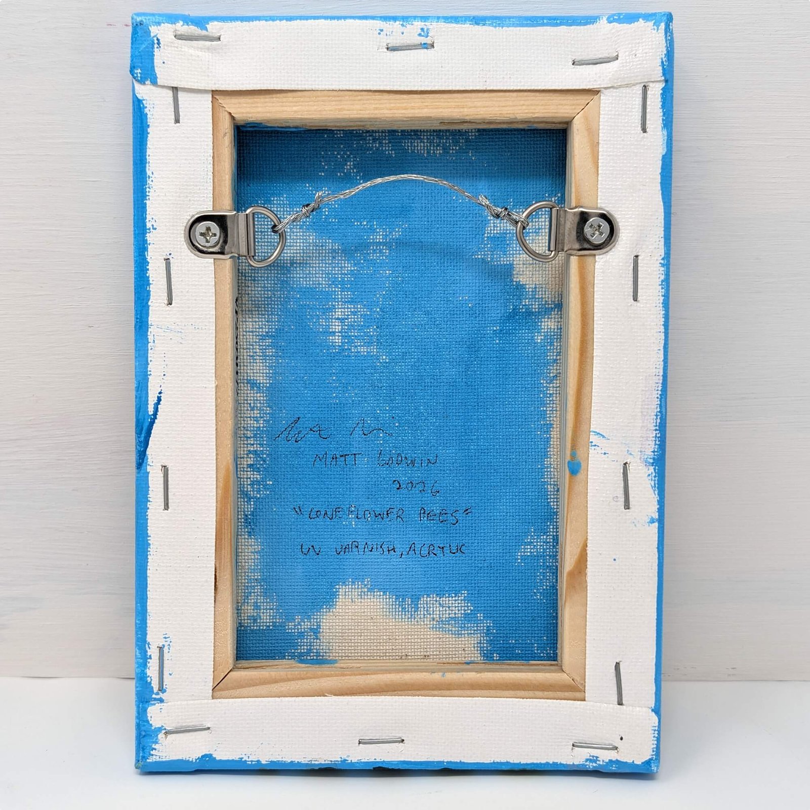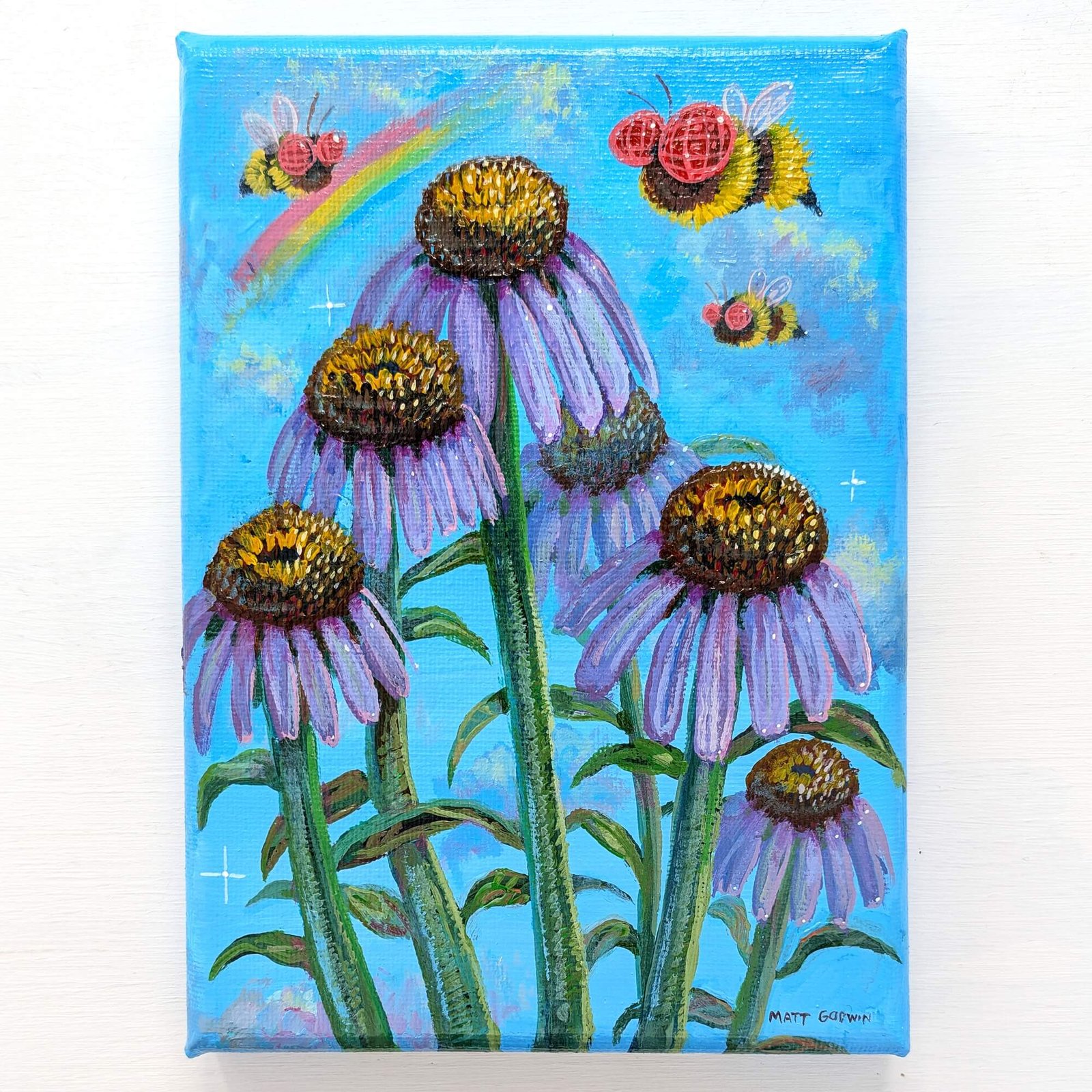 “Coneflower Bees” original acrylic painting on canvas by Matt Godwin 5″x7″