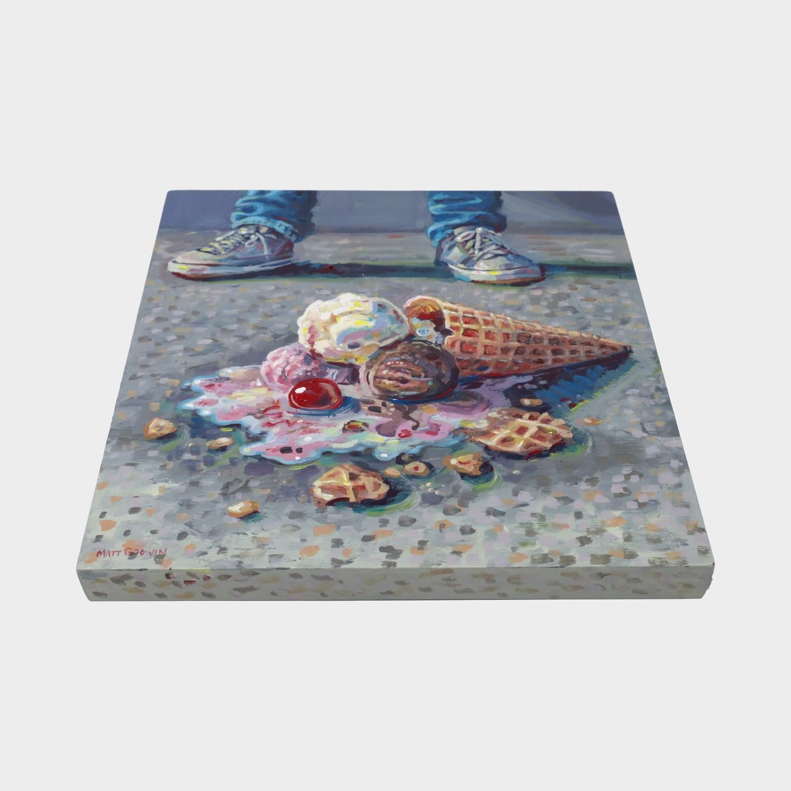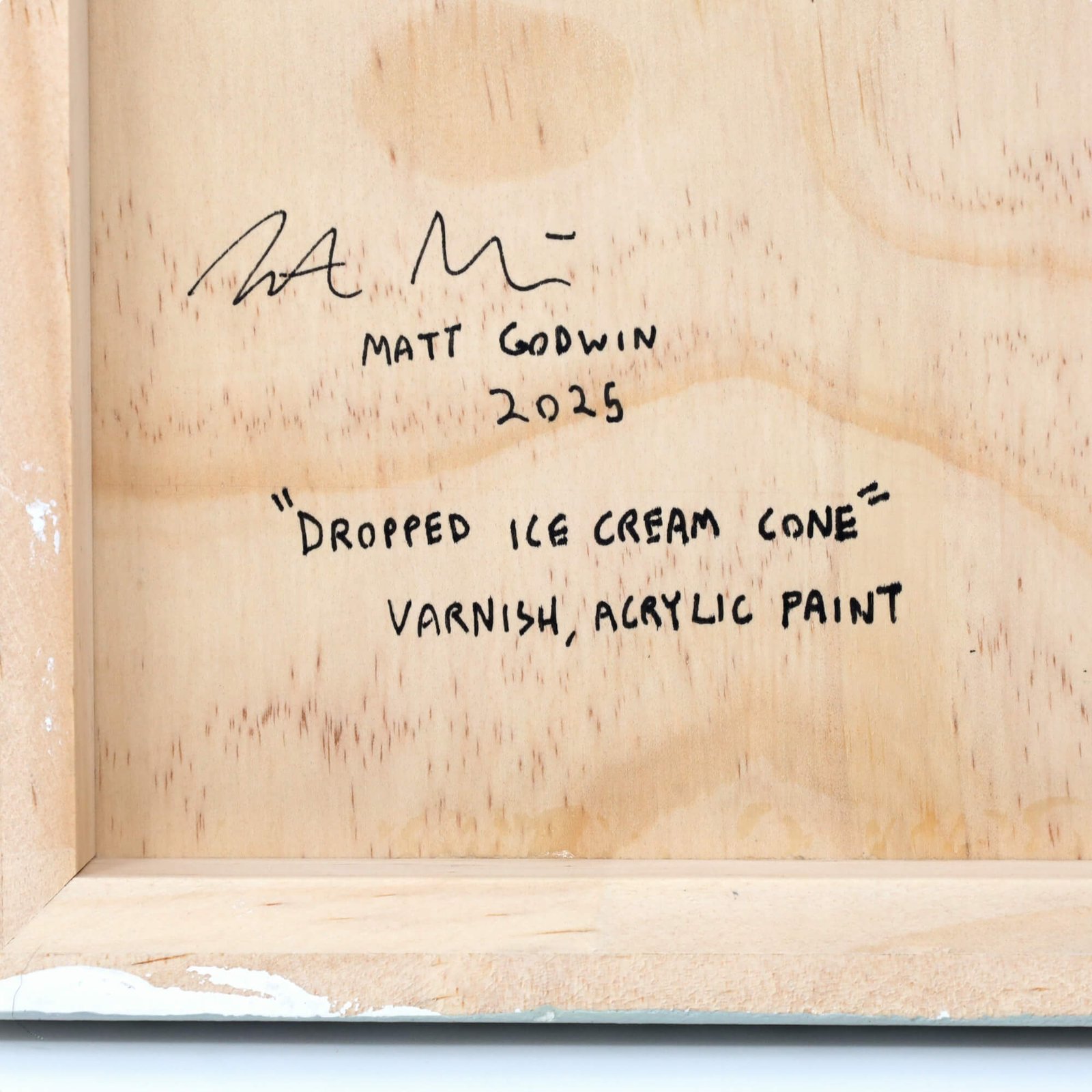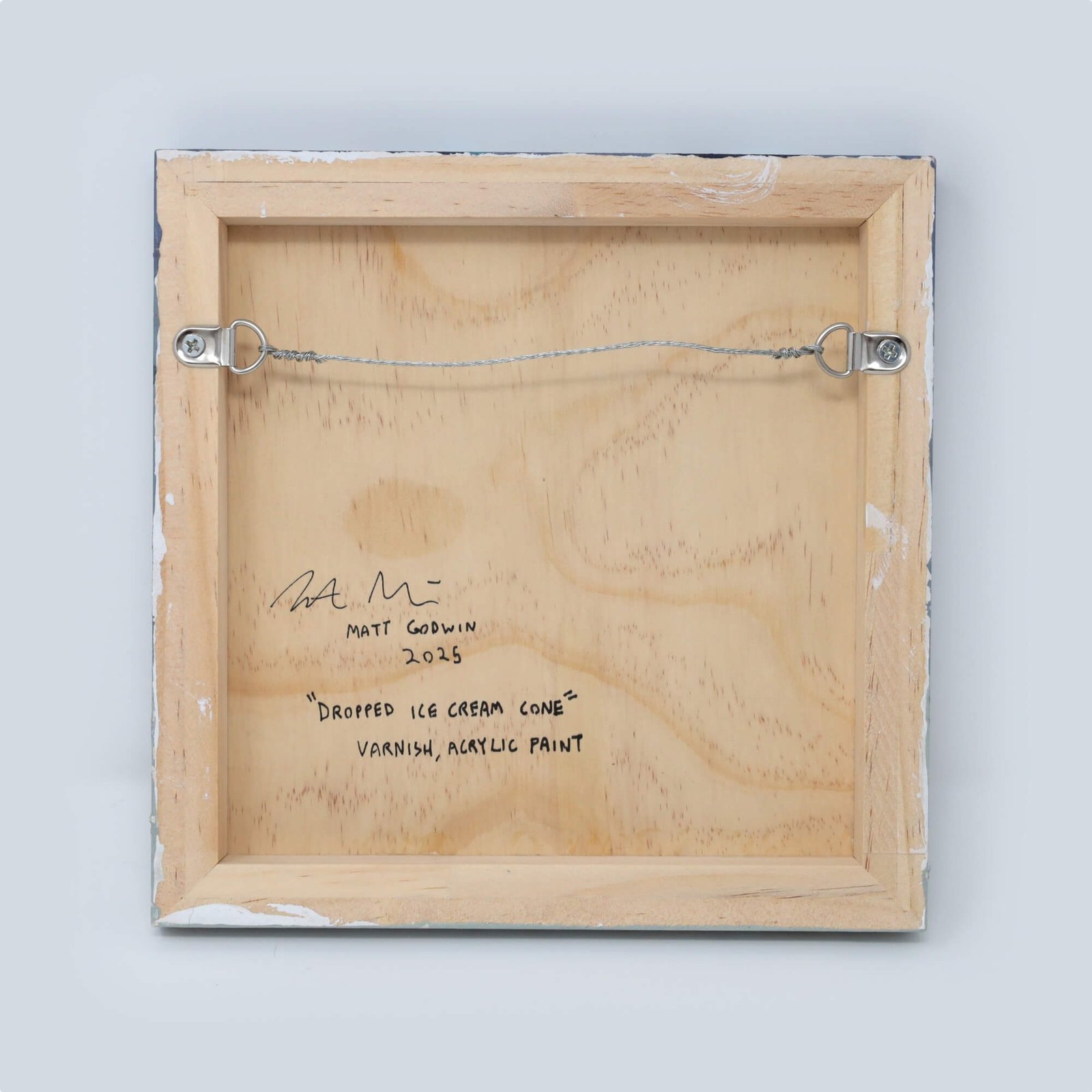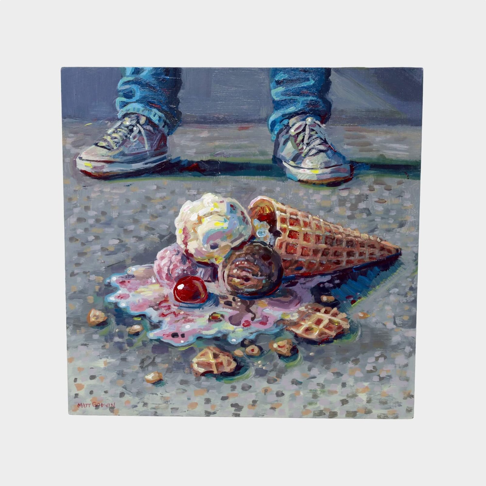 “Dropped Ice Cream Cone” original acrylic painting on wood by Matt Godwin 8″x8″