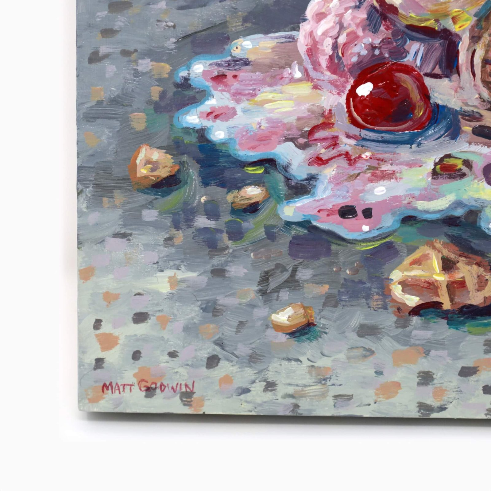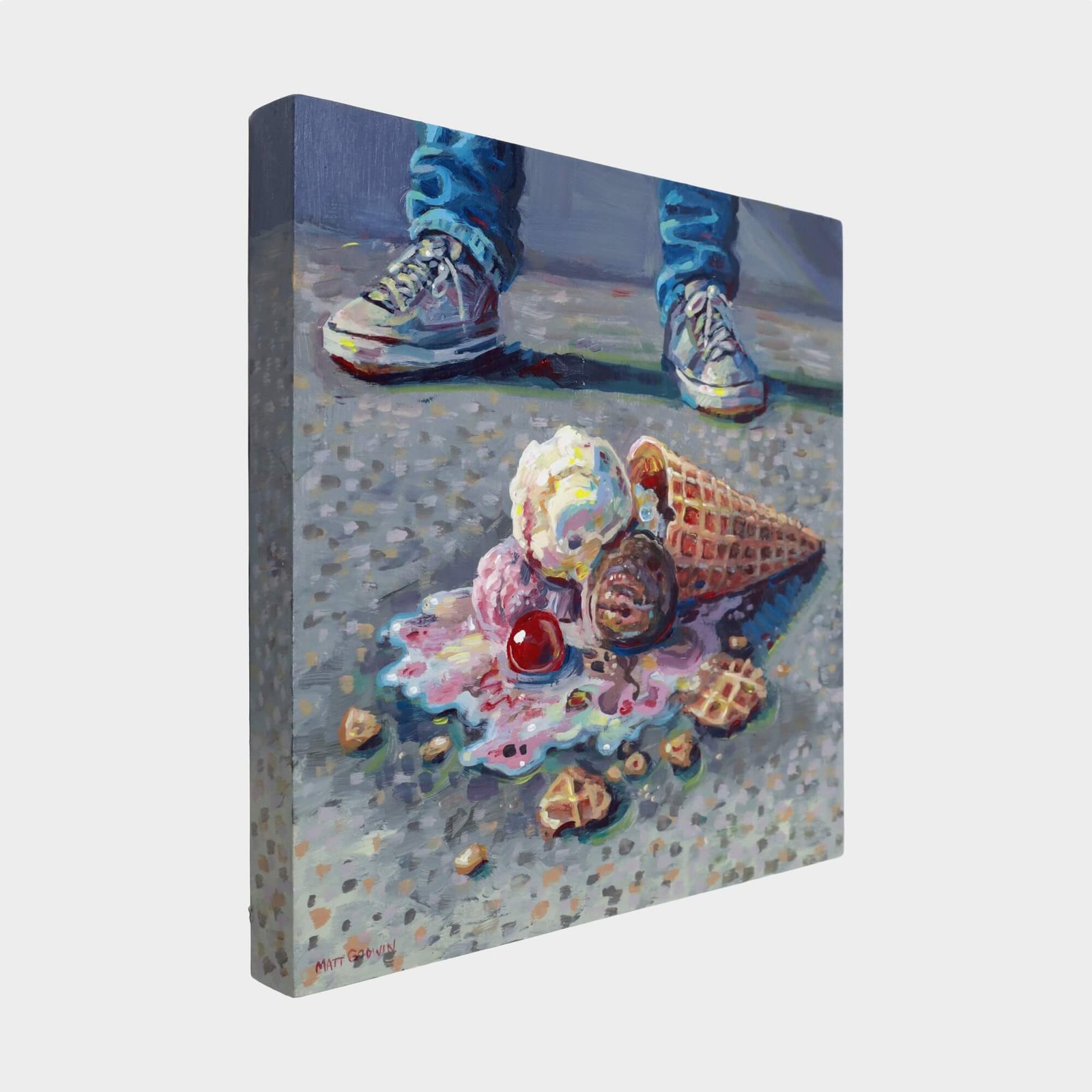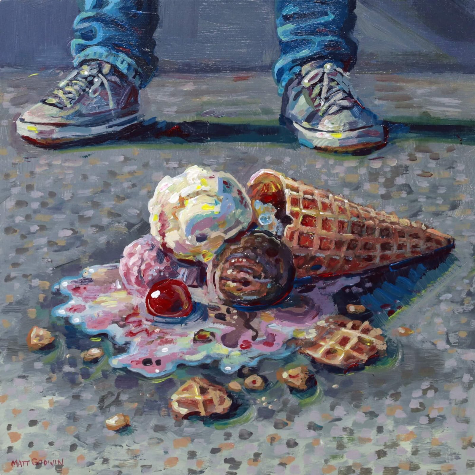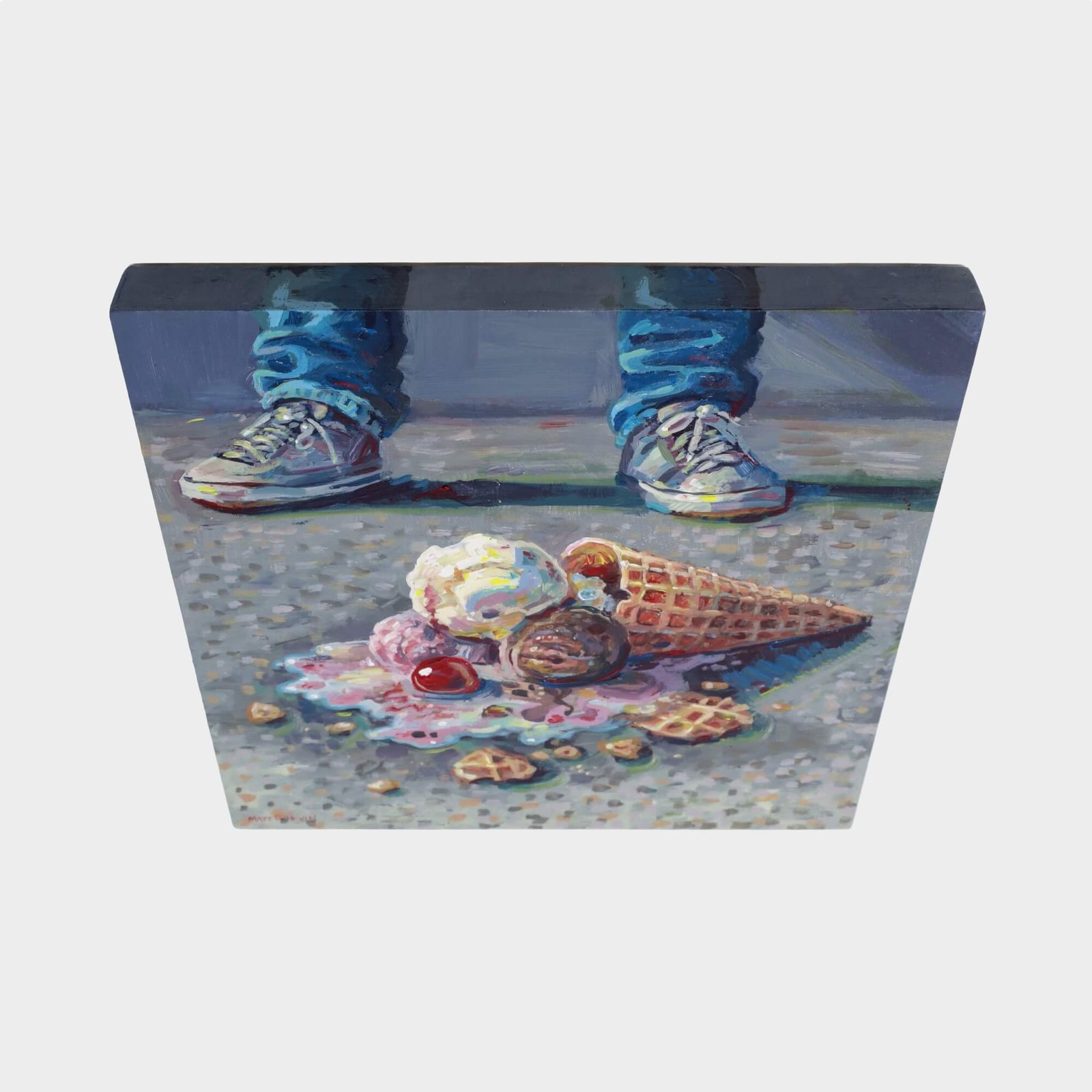 “Dropped Ice Cream Cone” original acrylic painting on wood by Matt Godwin 8″x8″