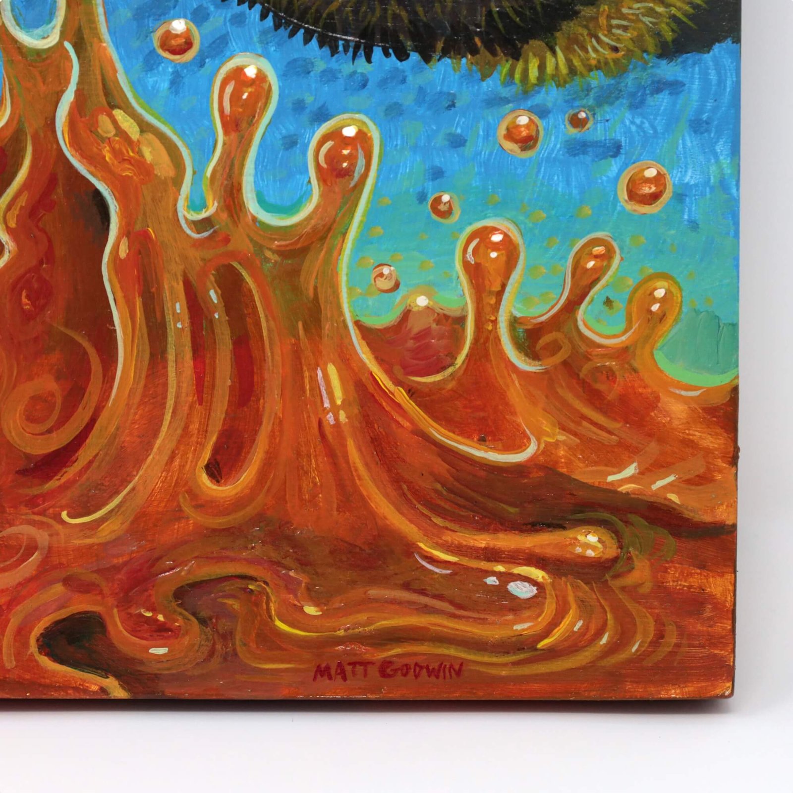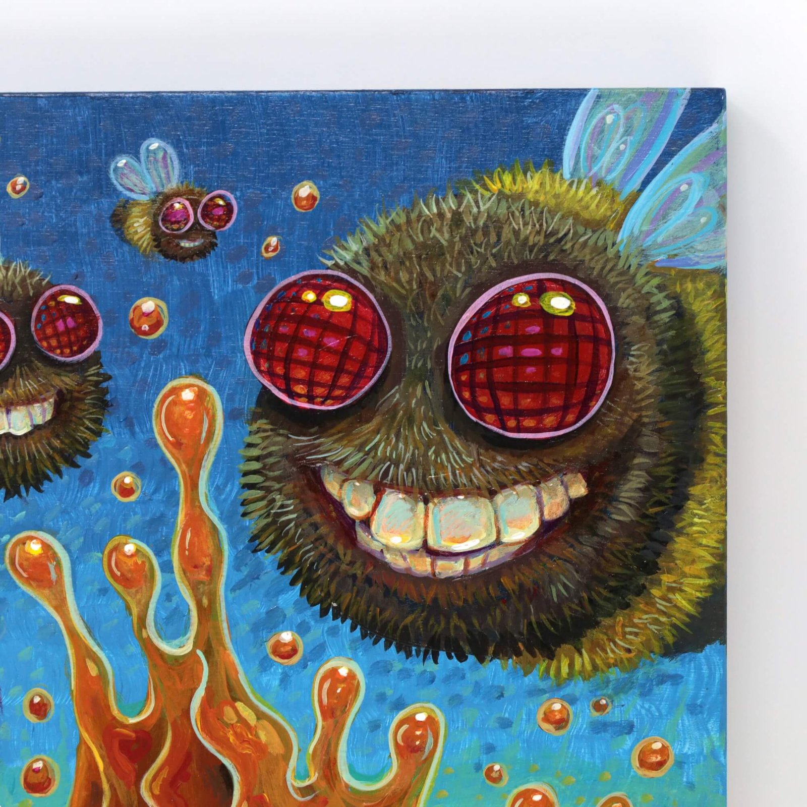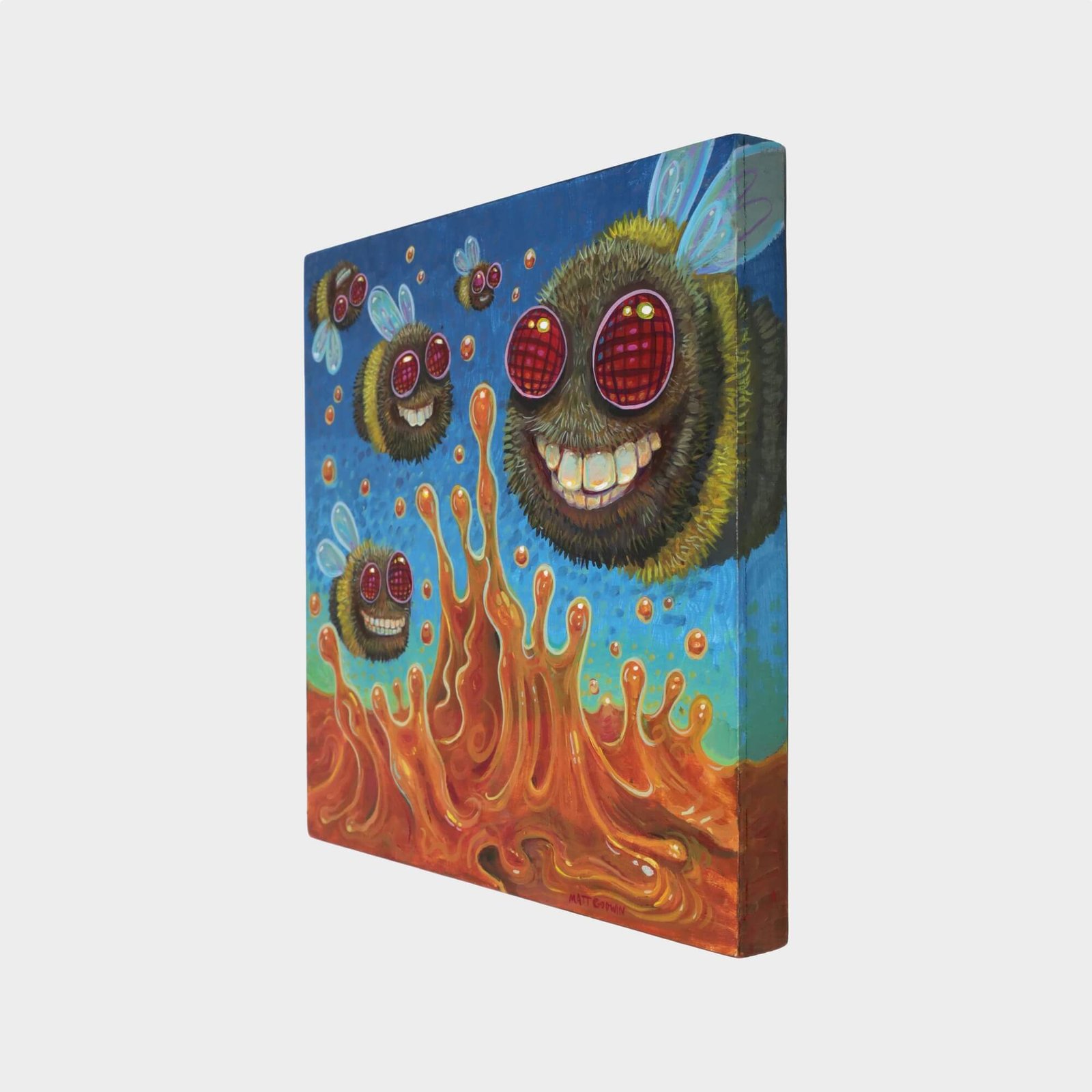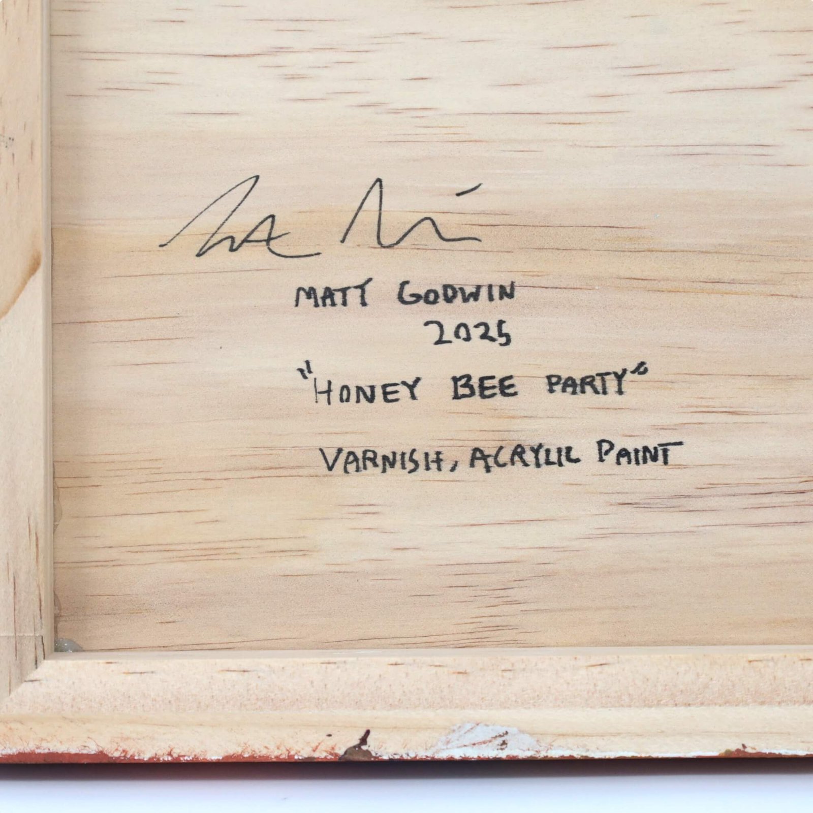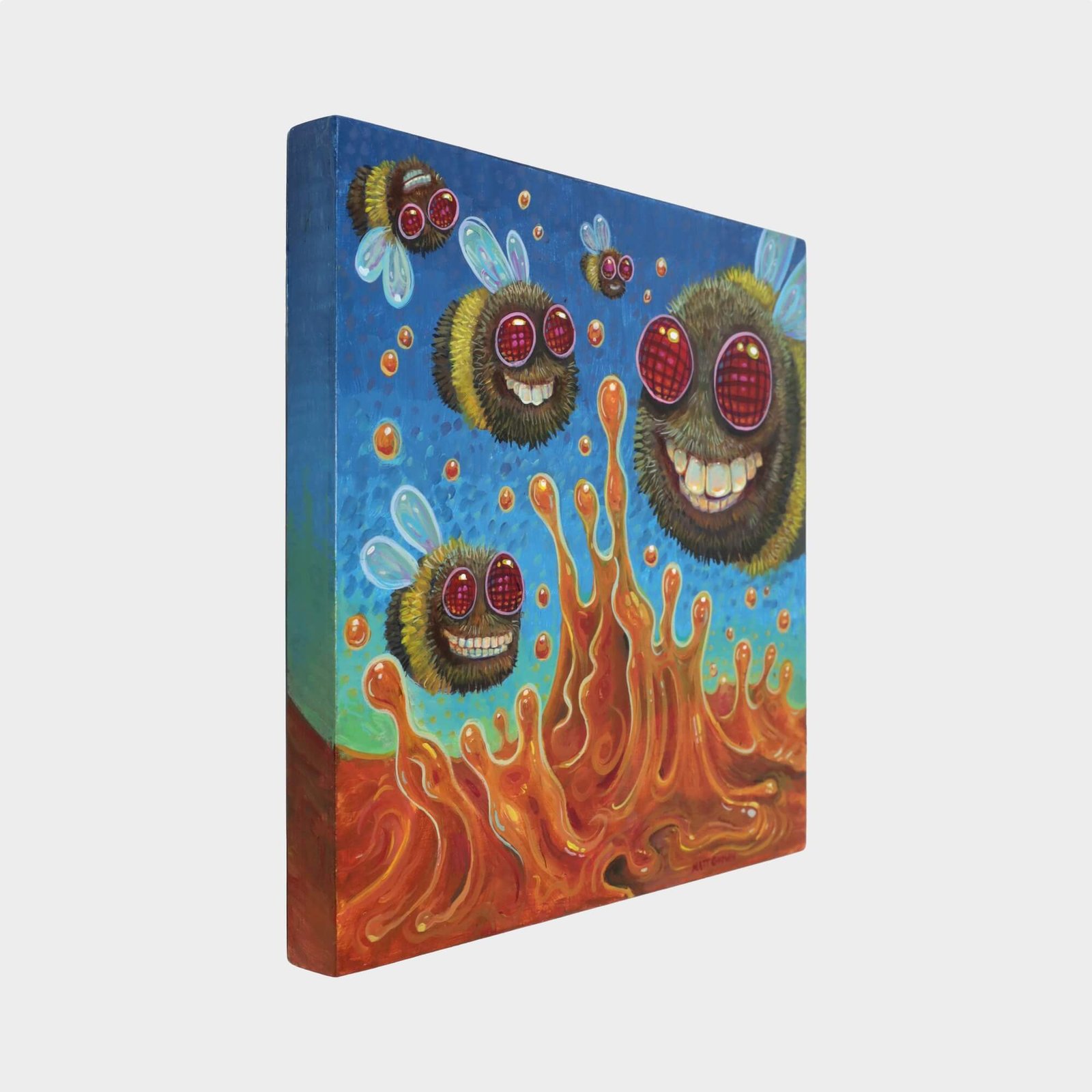 “Honey Bee Party” original acrylic painting on wood by Matt Godwin 8″x8″
