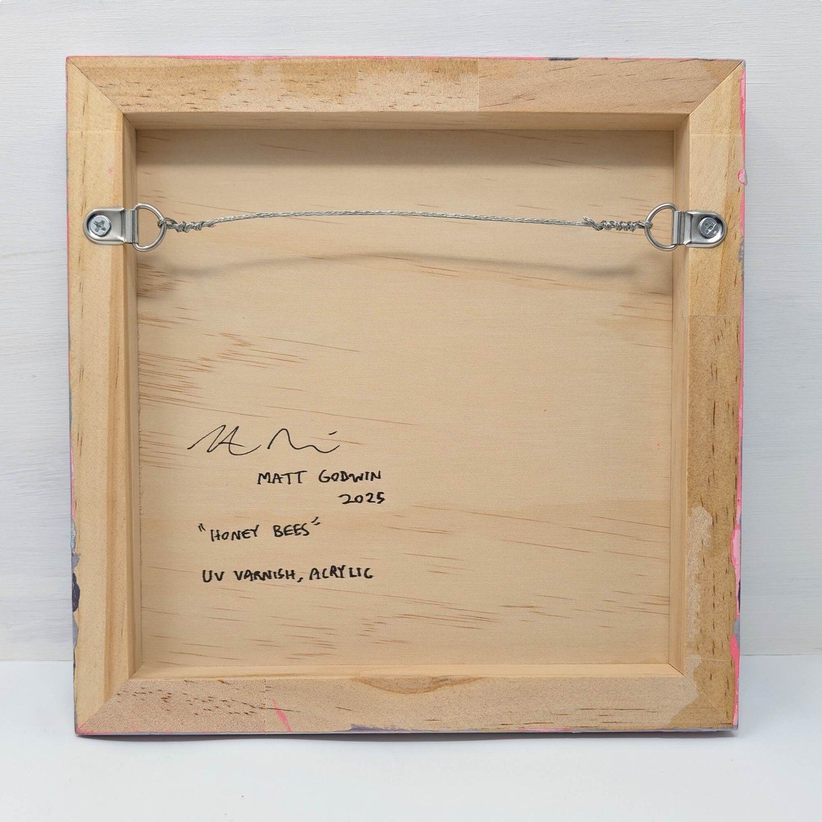 “Honey Bees” original acrylic painting on magnetic canvas panel by Matt Godwin 8″x8″