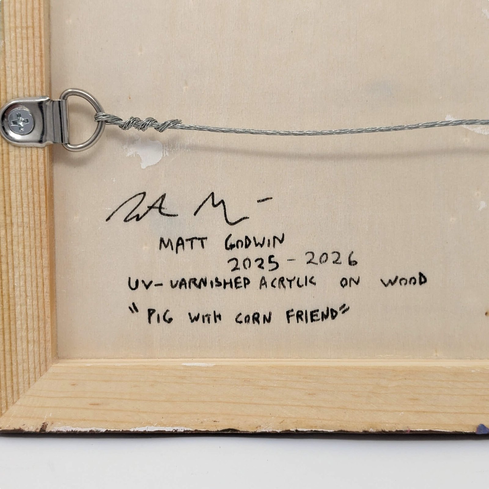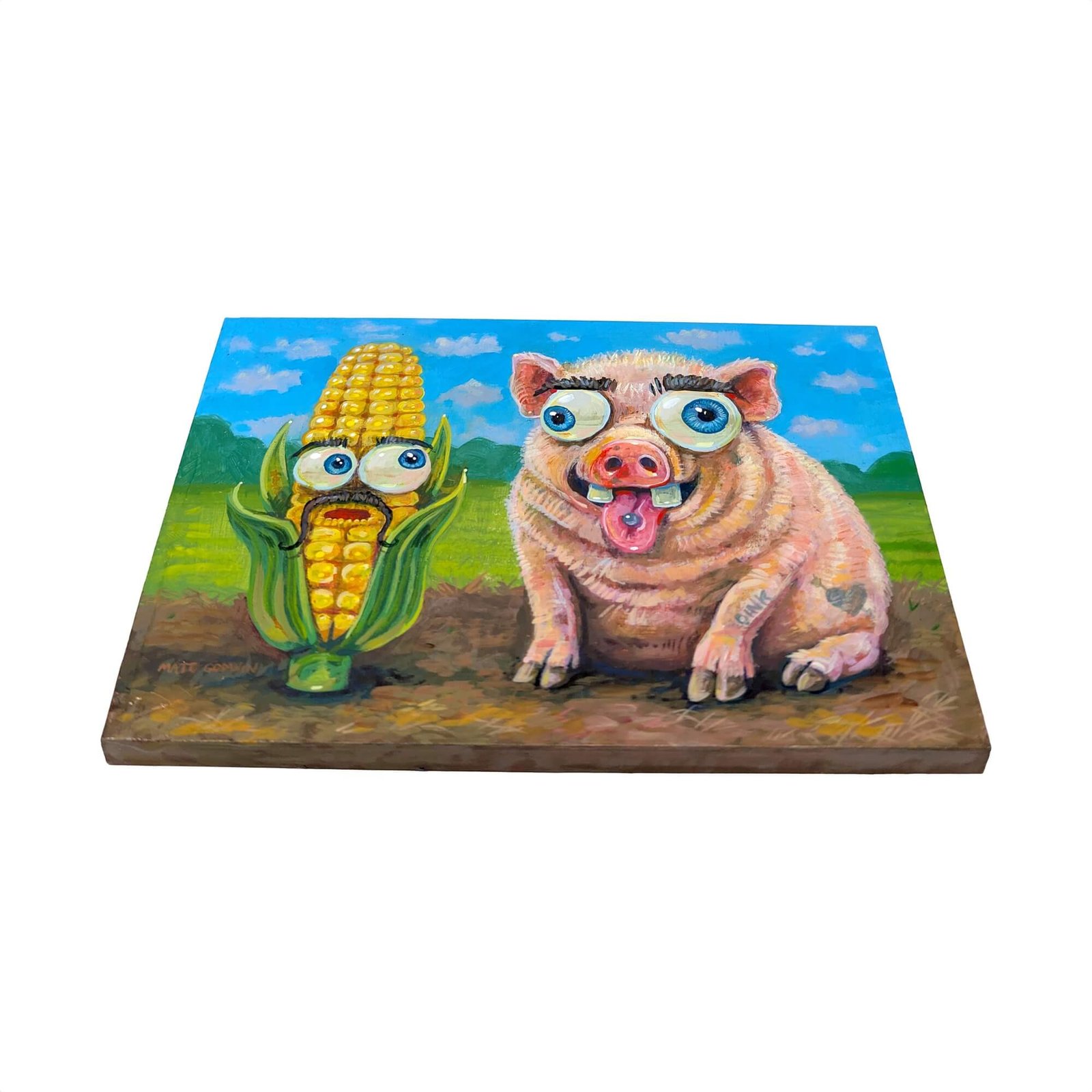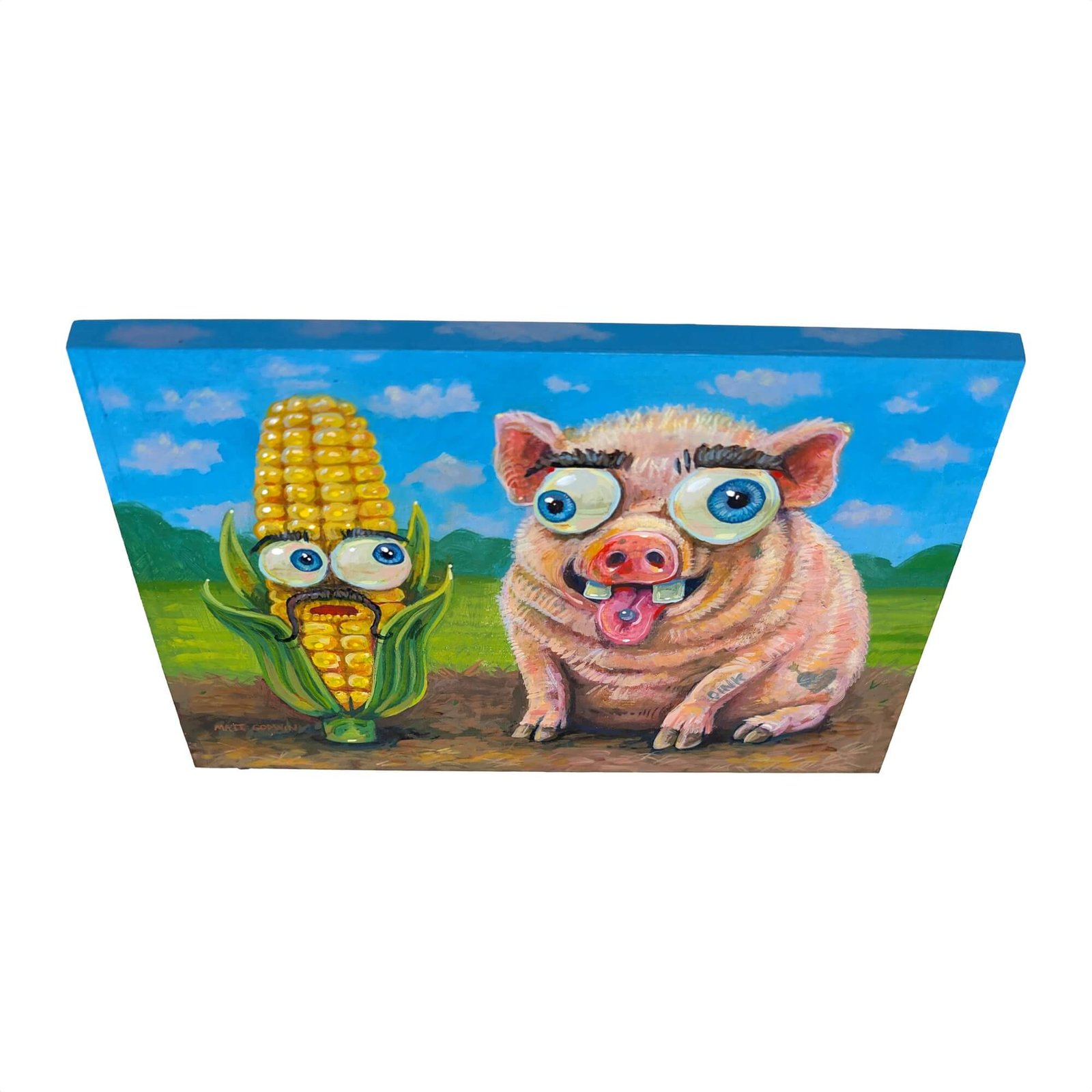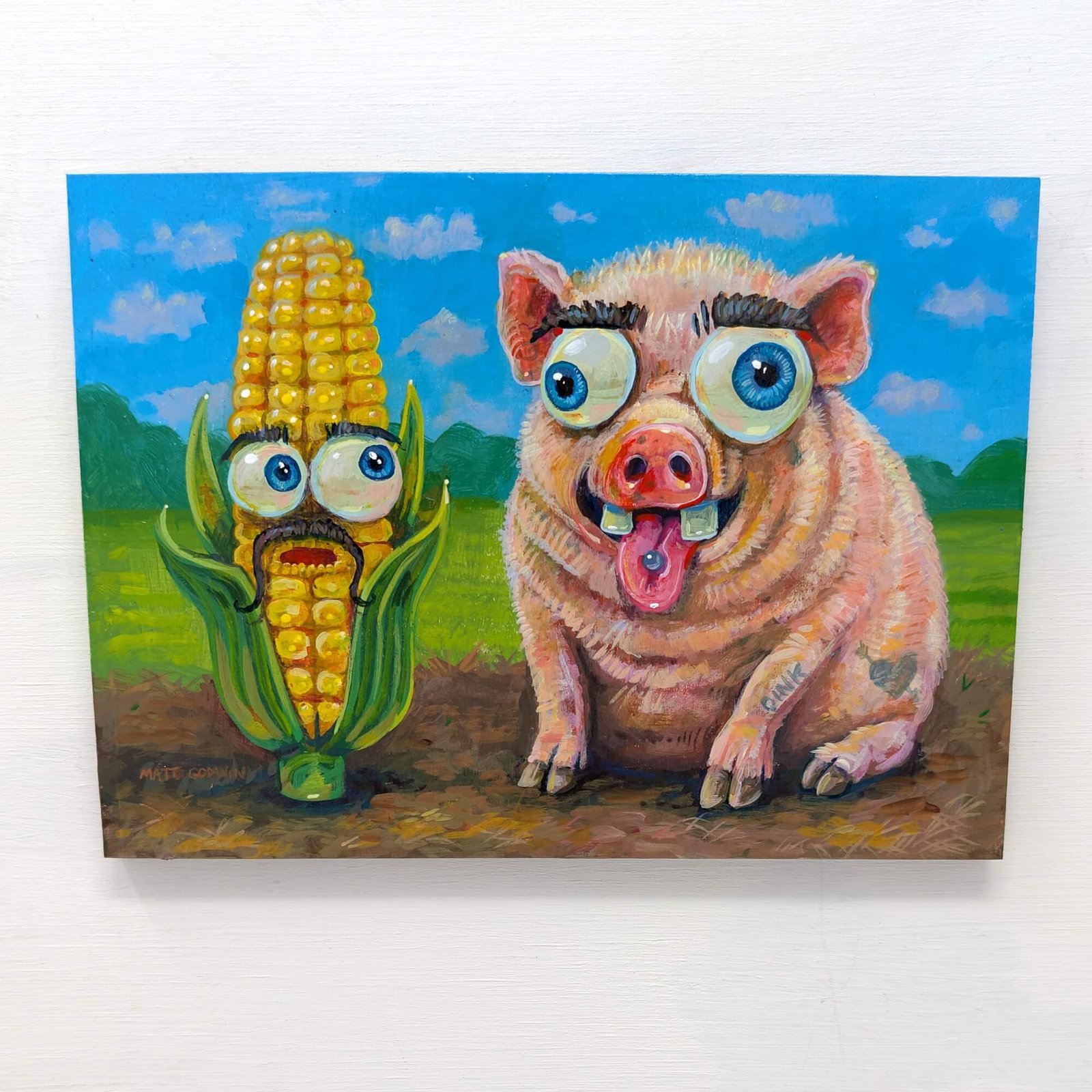 “Pig With Corn Friend” original acrylic painting on wood by Matt Godwin 7″x5″ Load Listing