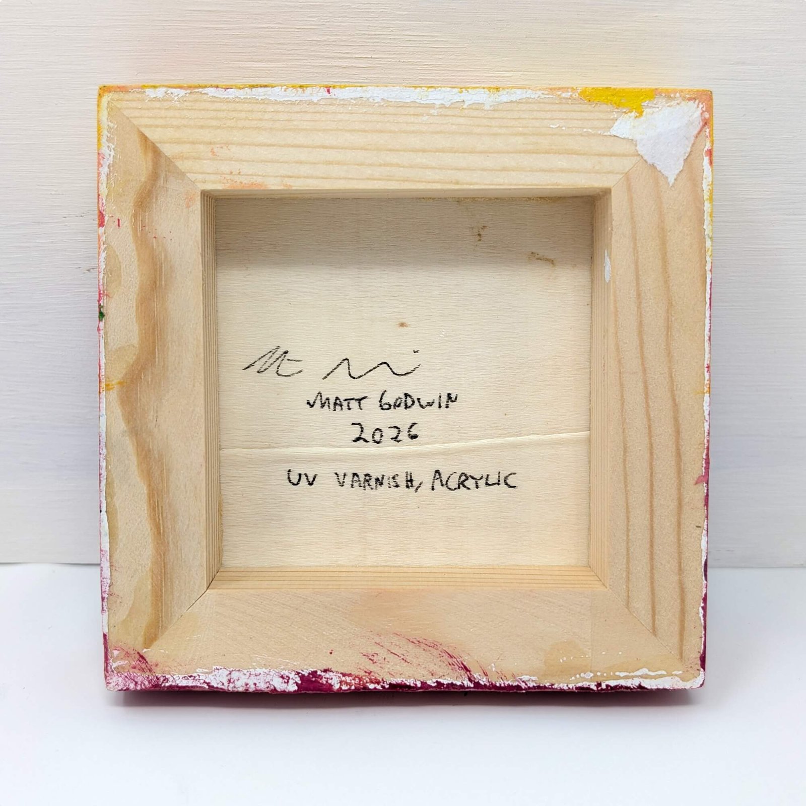 “Rainbow Dolphin” original acrylic painting on wood by Matt Godwin 4″x4″