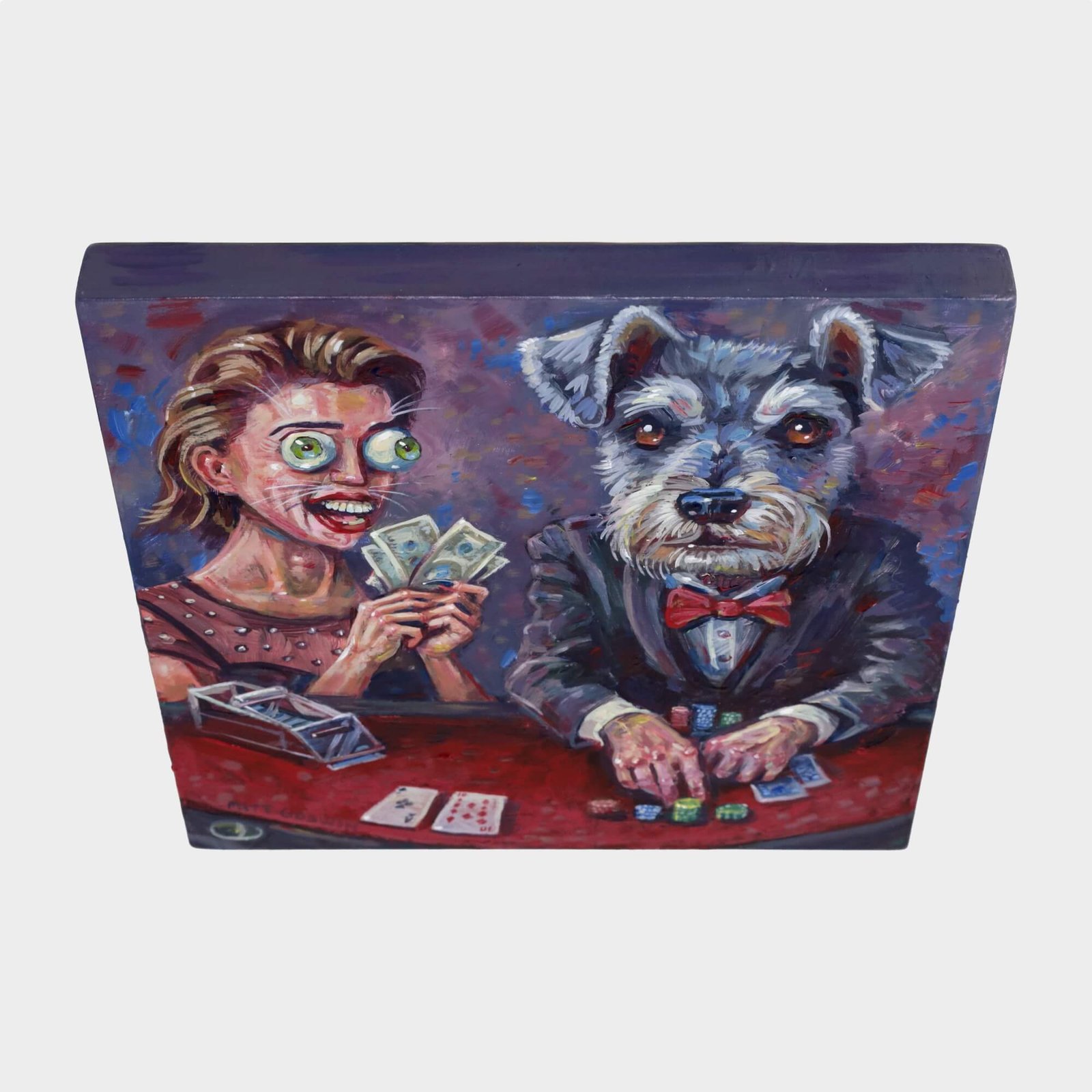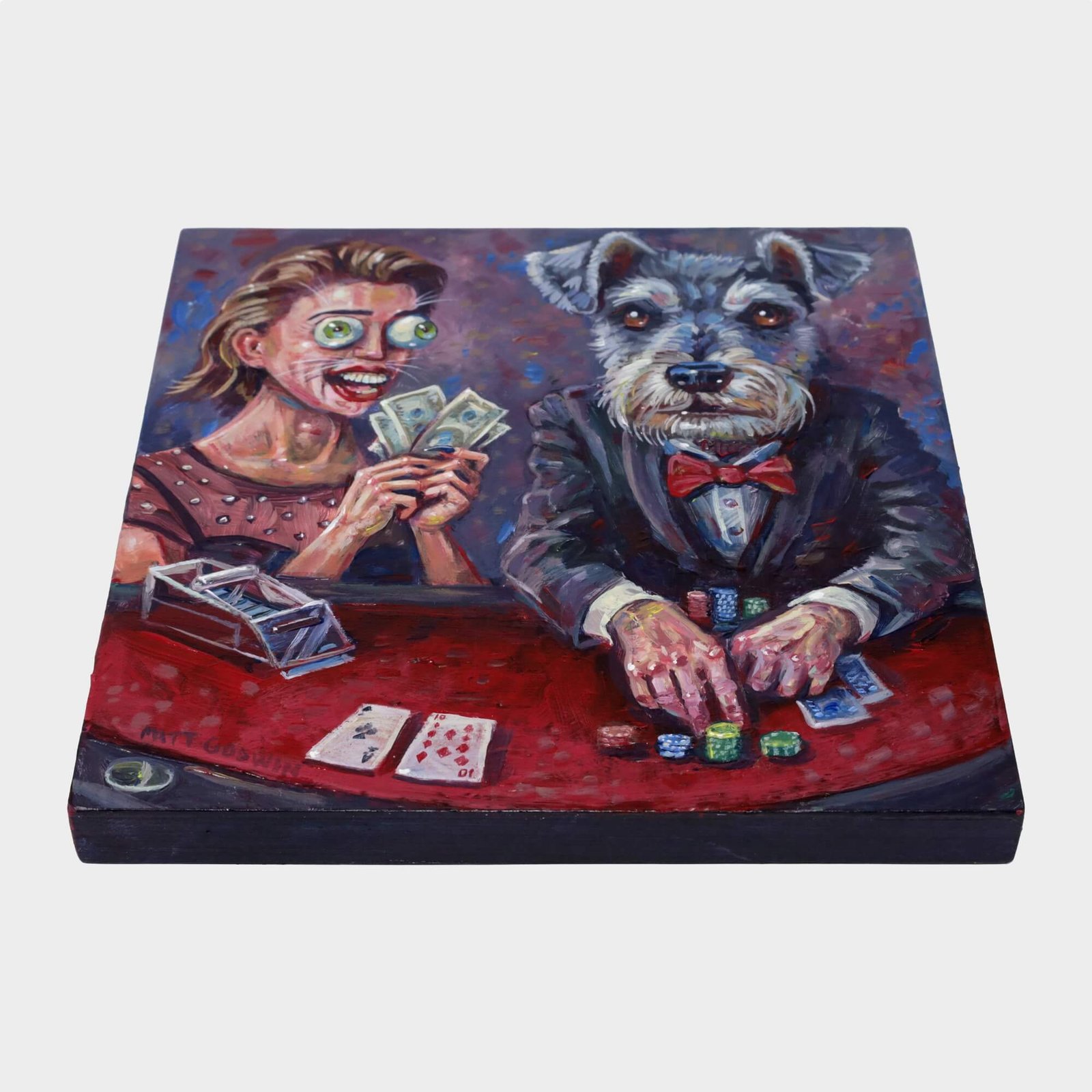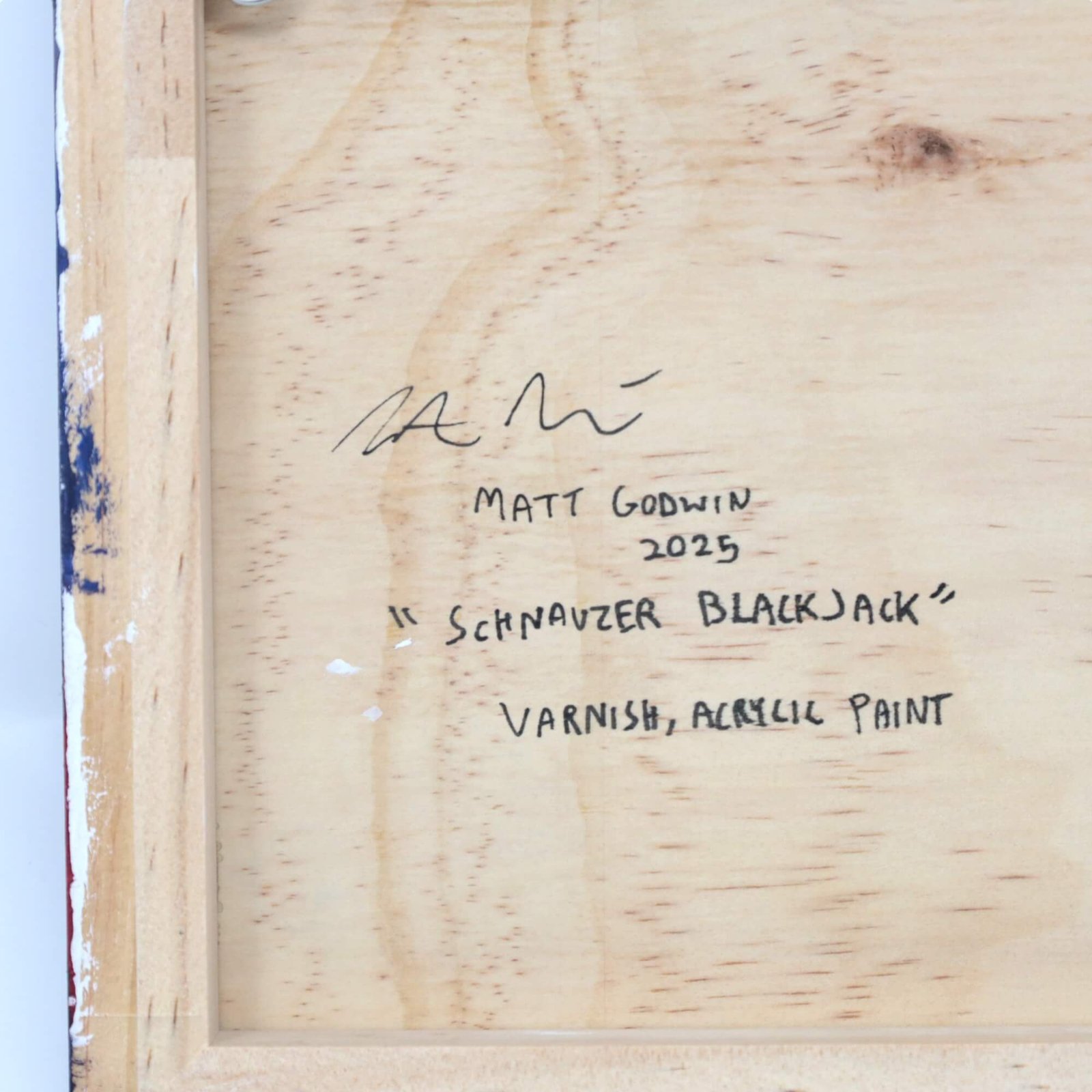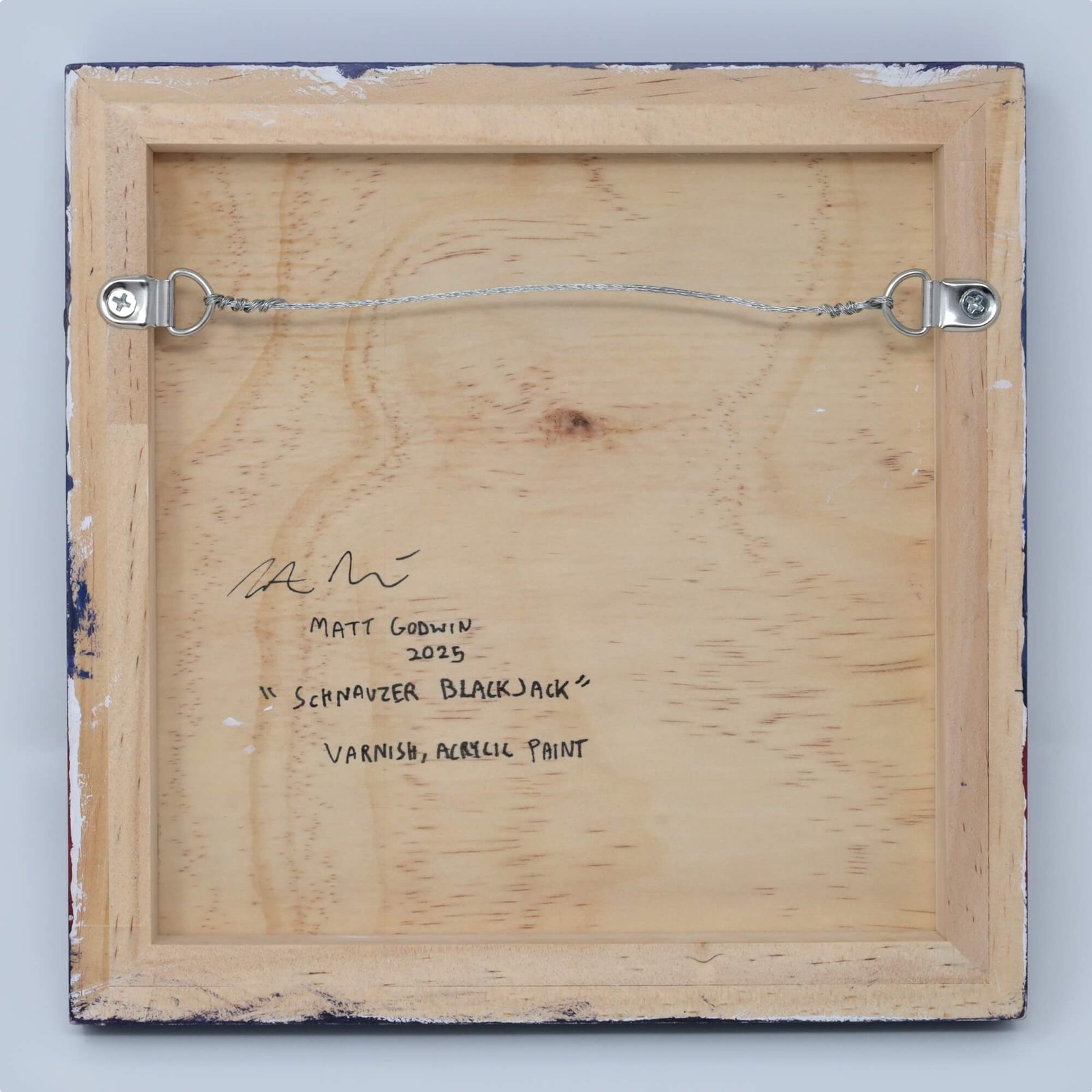 “Schnauzer Blackjack” original acrylic painting on wood by Matt Godwin 8″x8″
