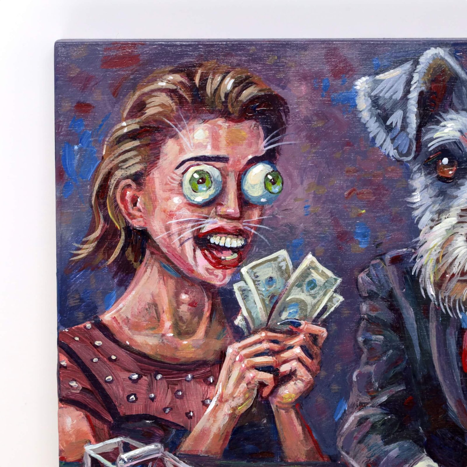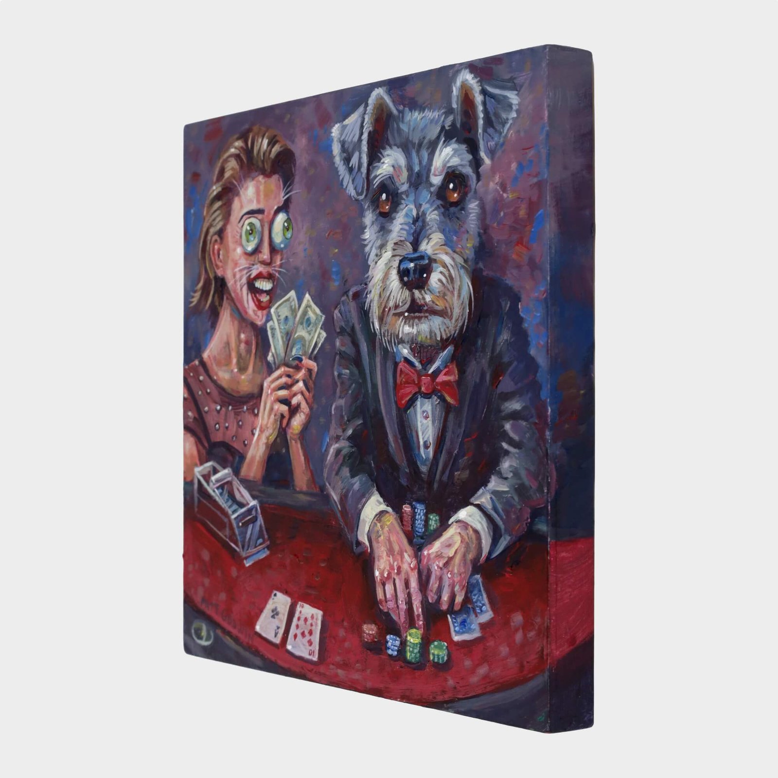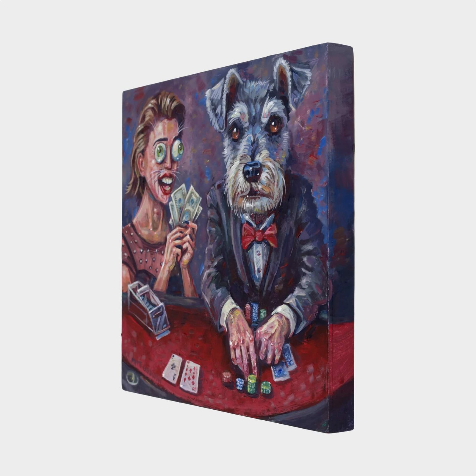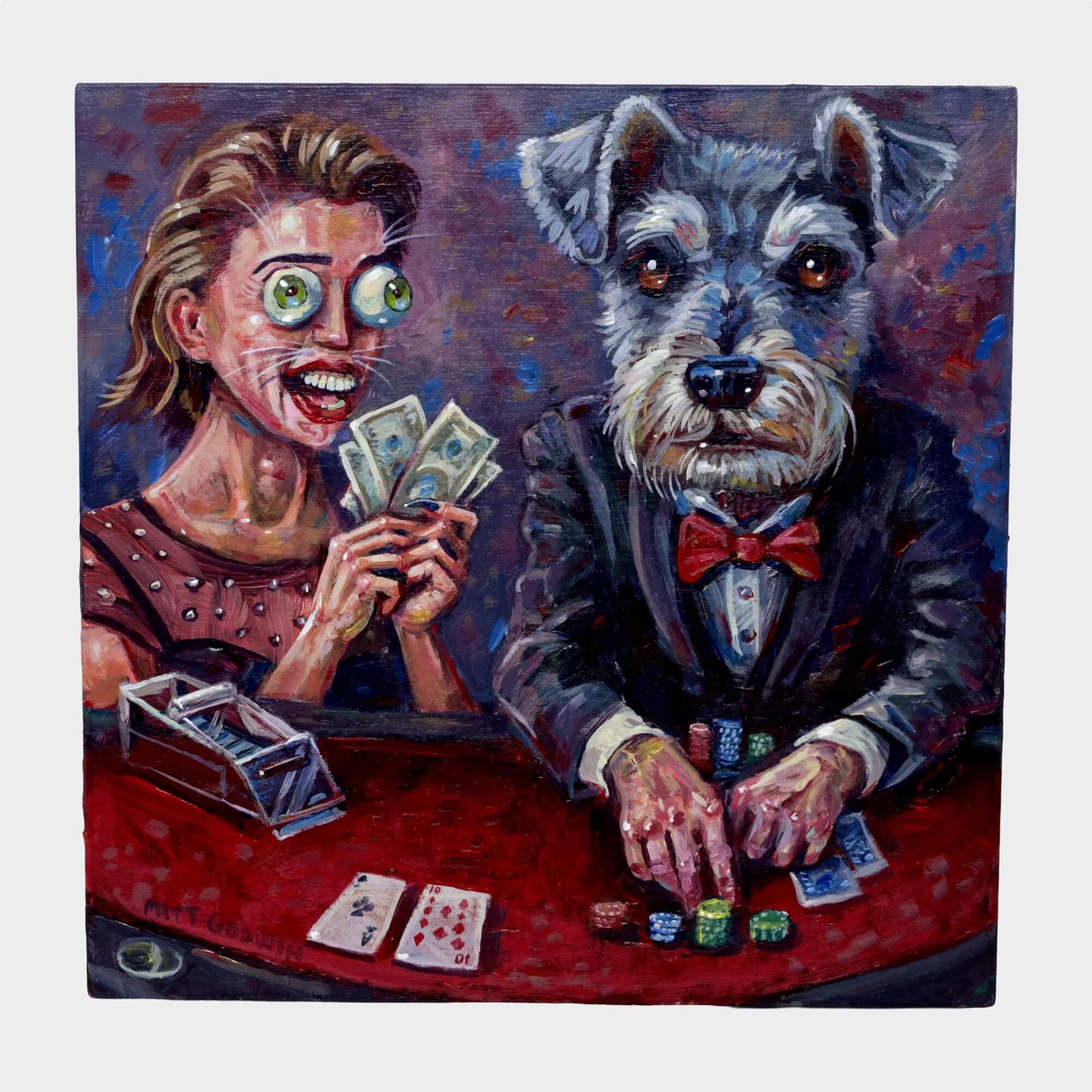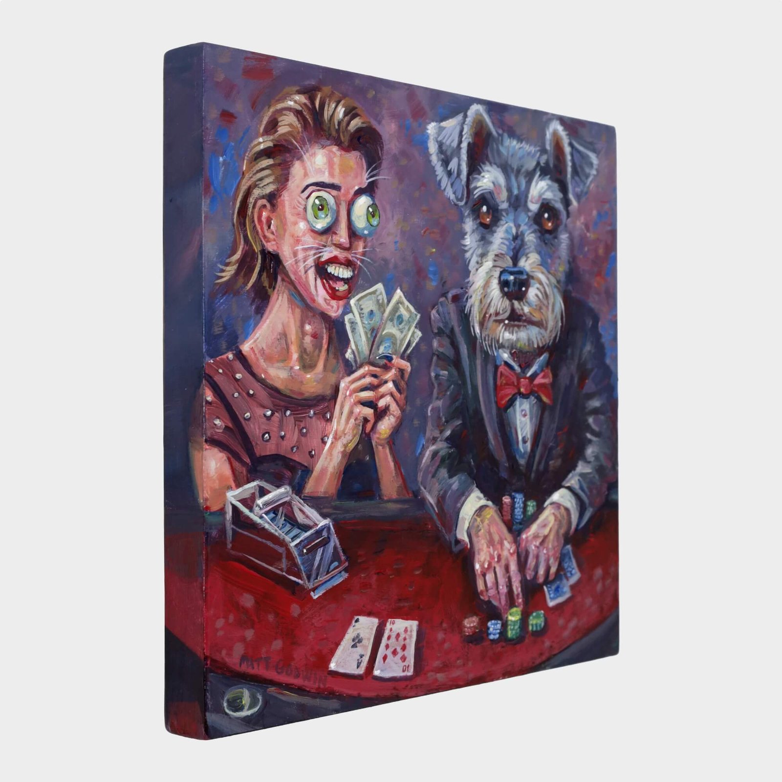“Schnauzer Blackjack” original acrylic painting on wood by Matt Godwin 8″x8″