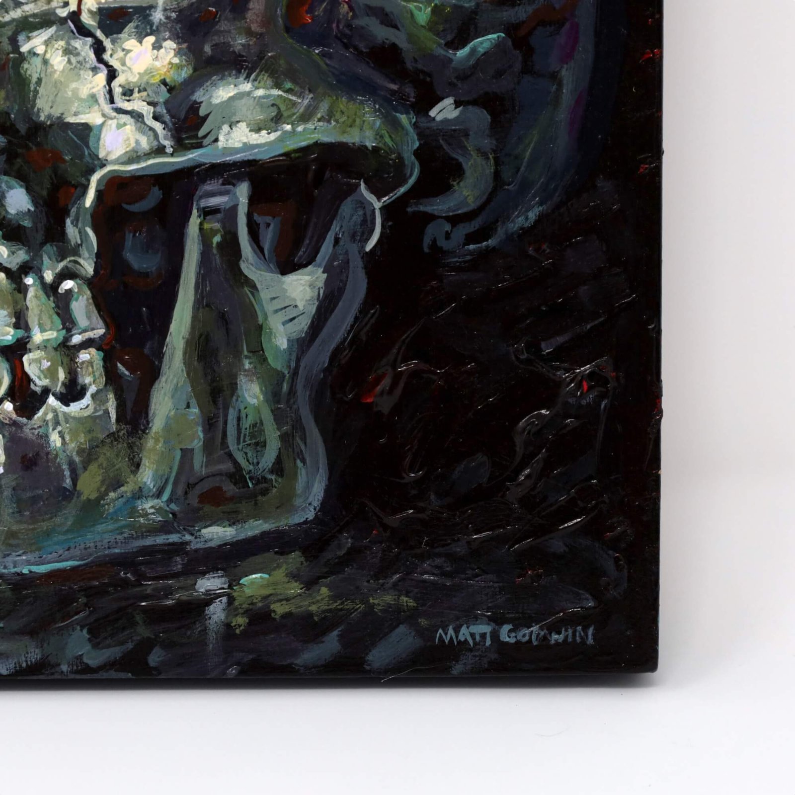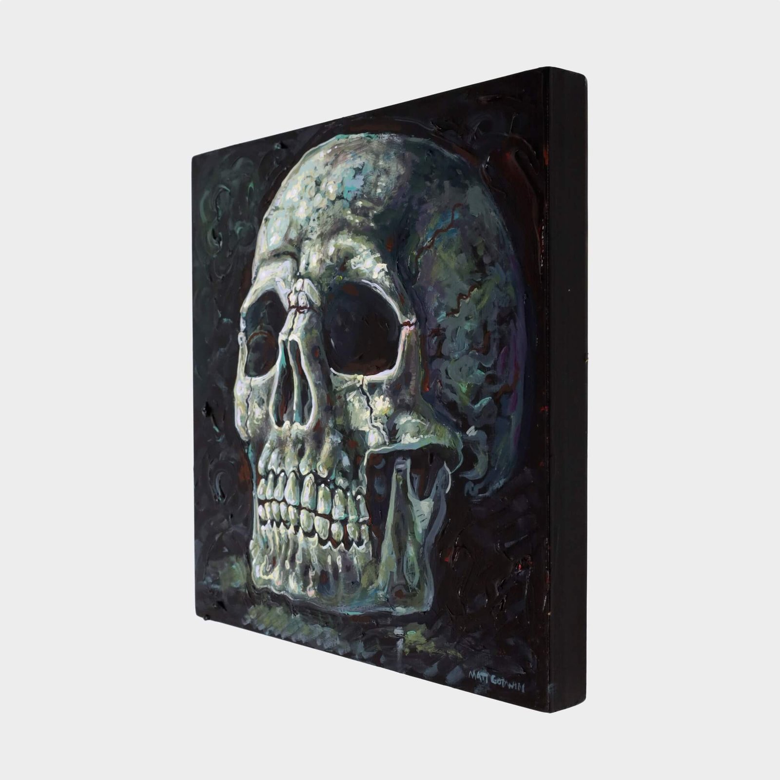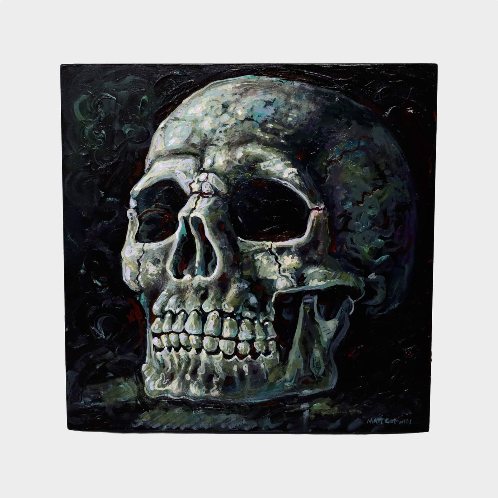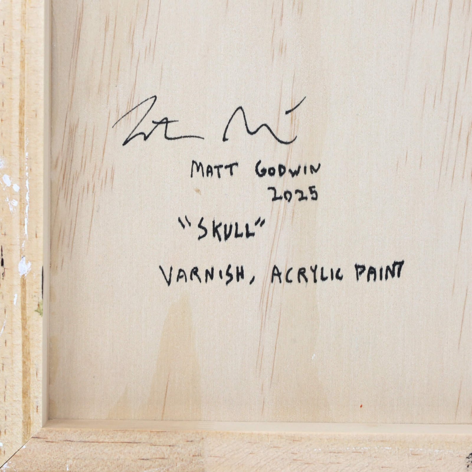 “Skull” original acrylic painting on wood by Matt Godwin 8″x8″