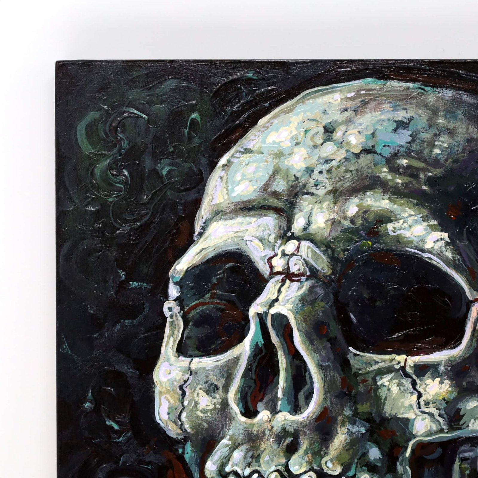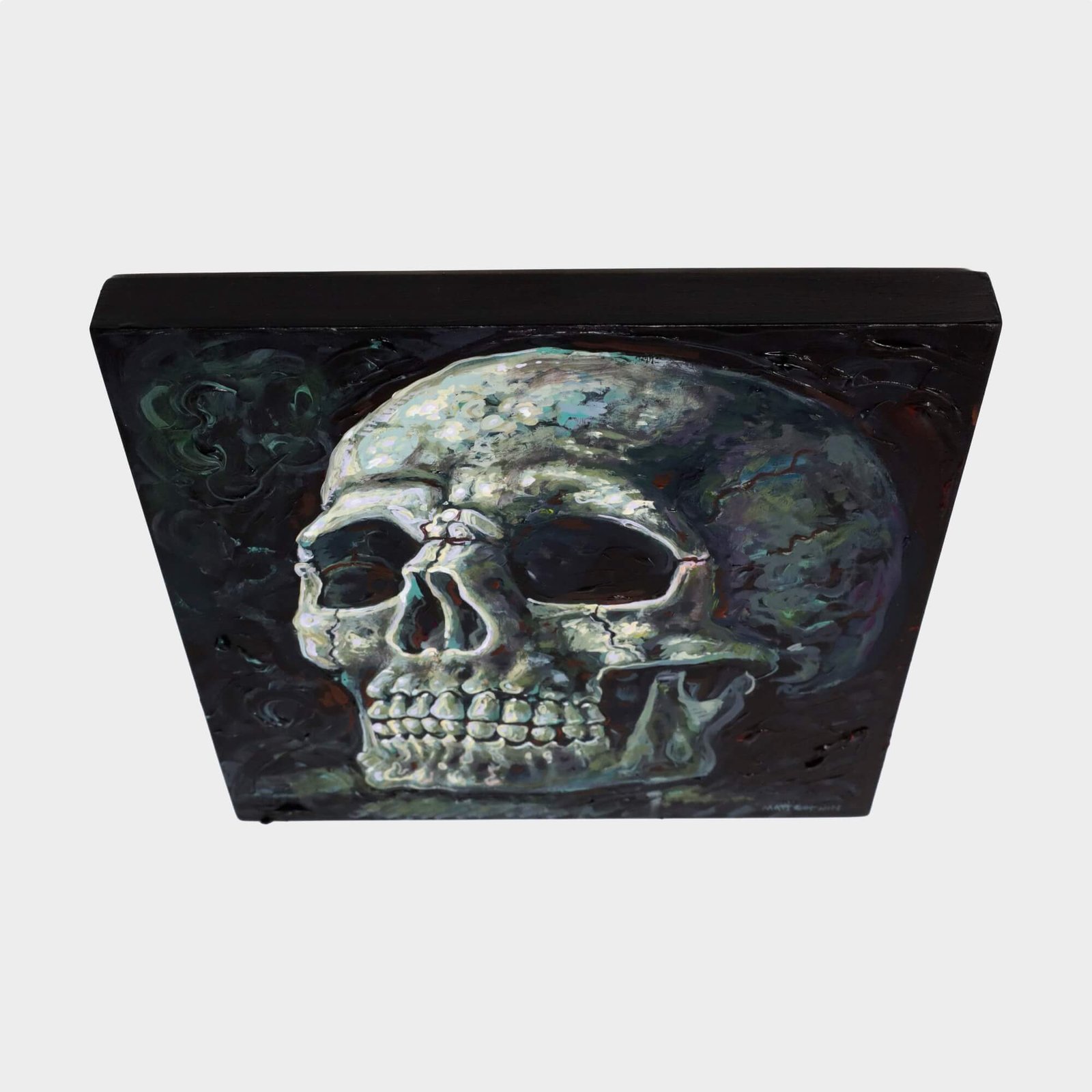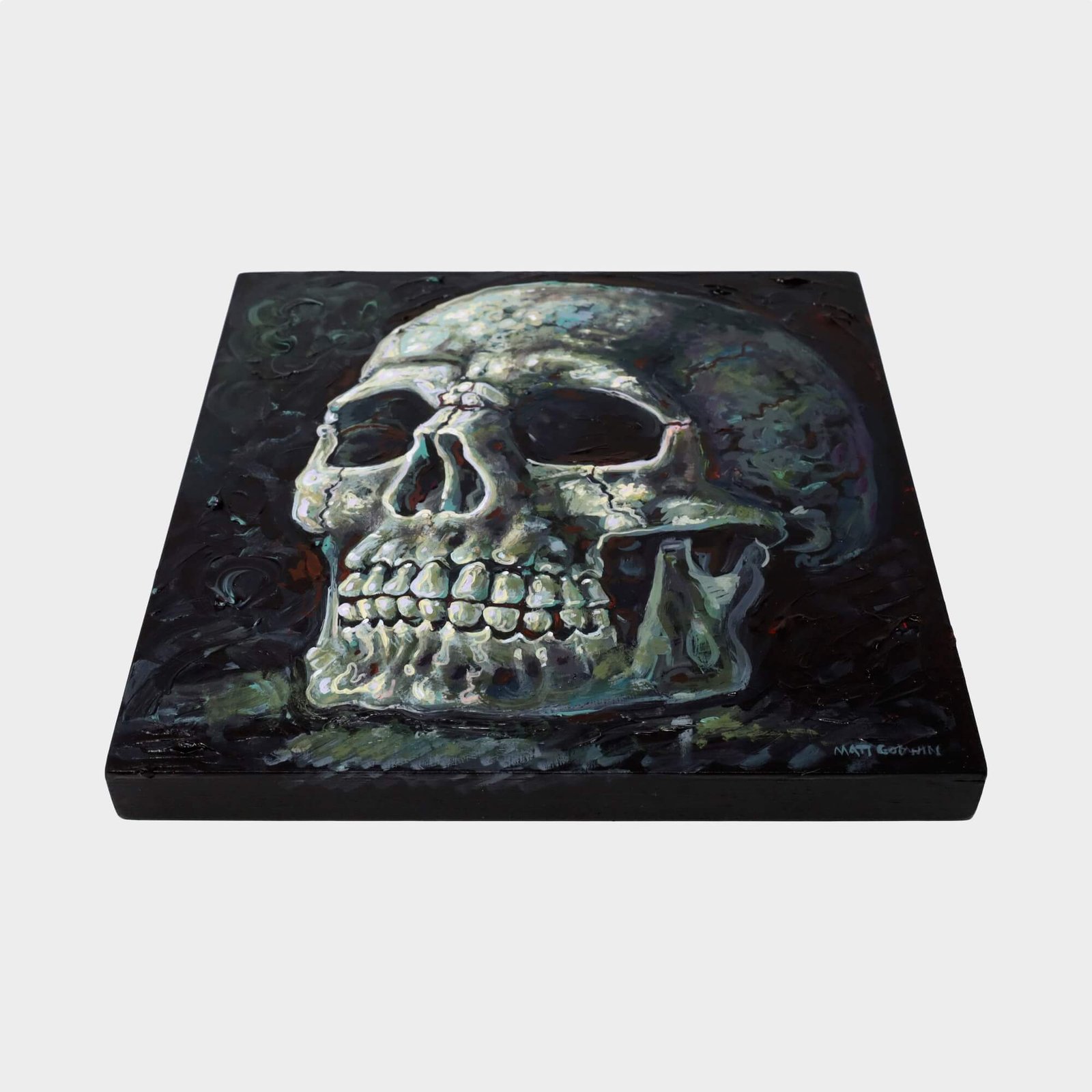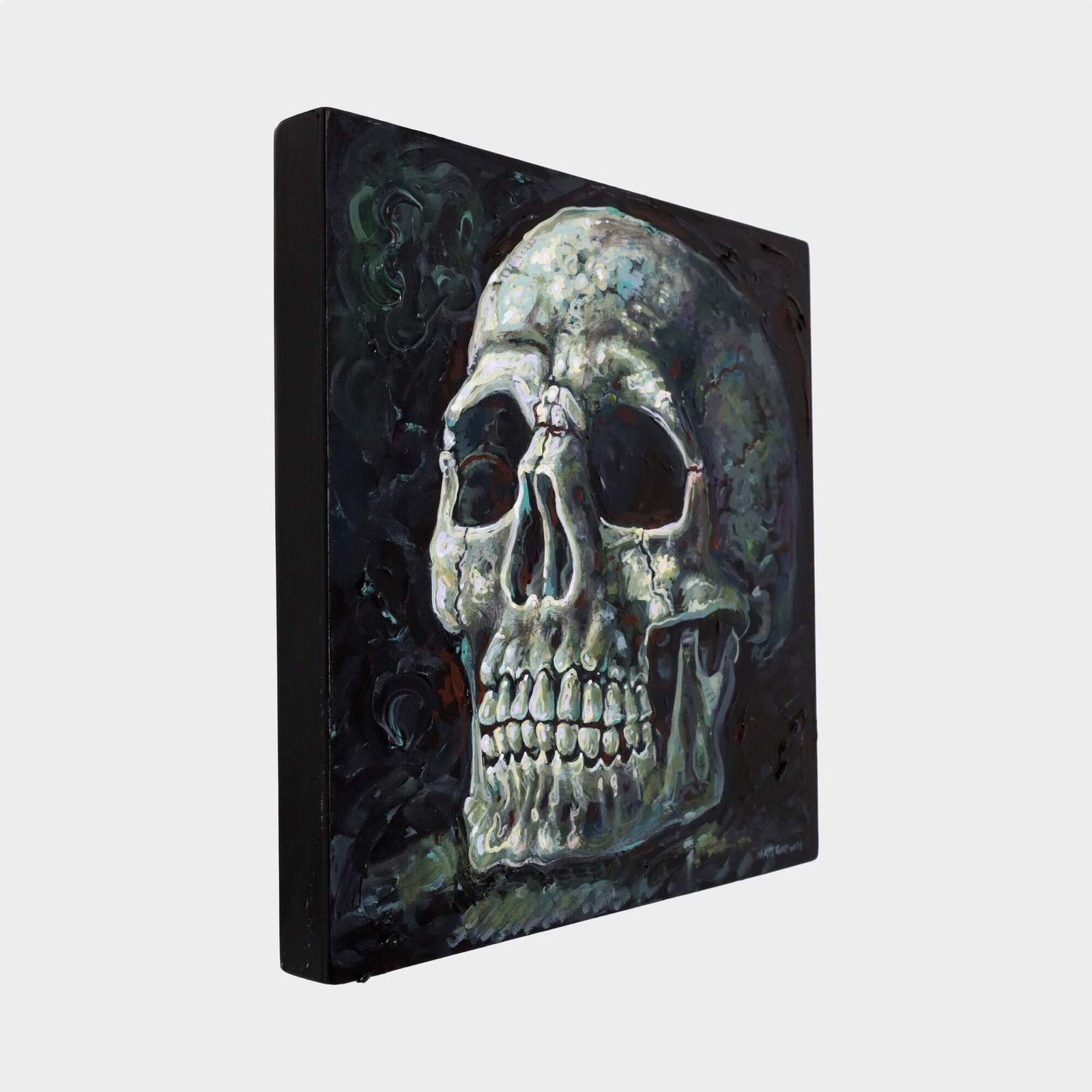 “Skull” original acrylic painting on wood by Matt Godwin 8″x8″