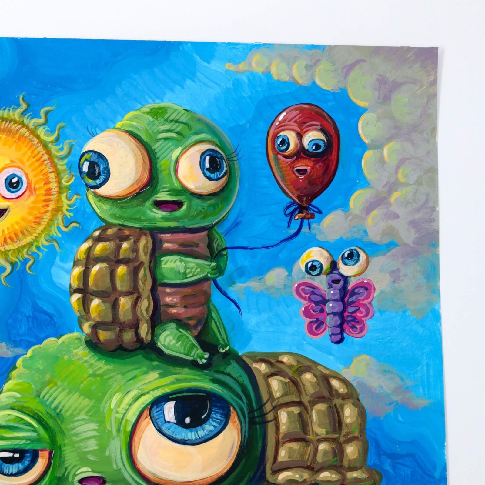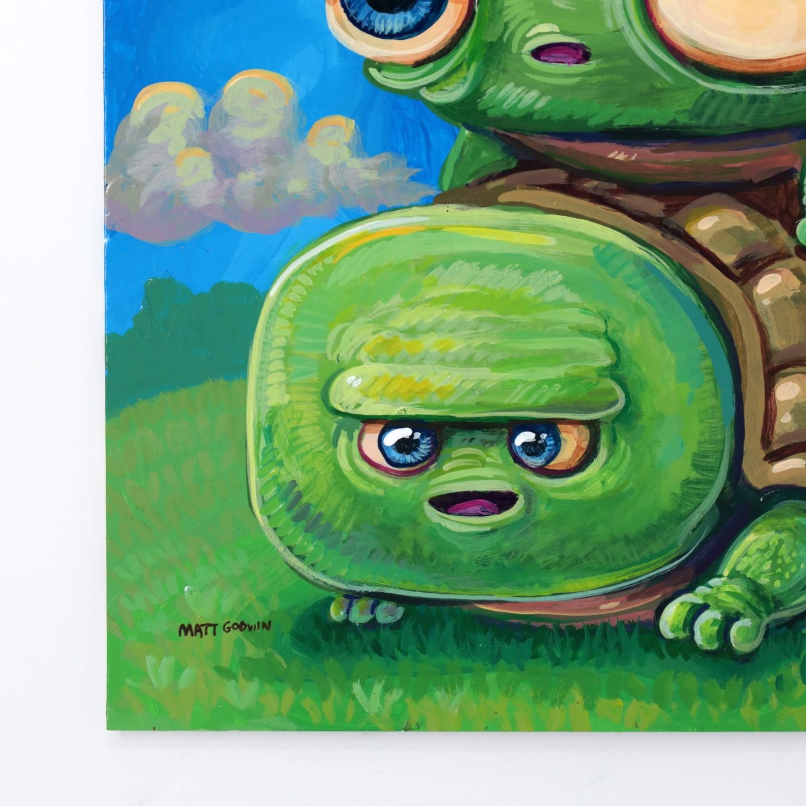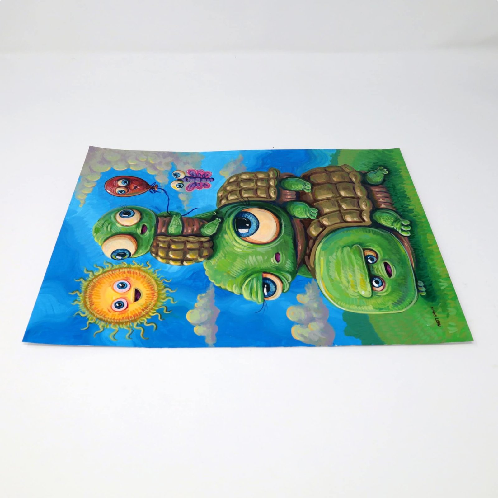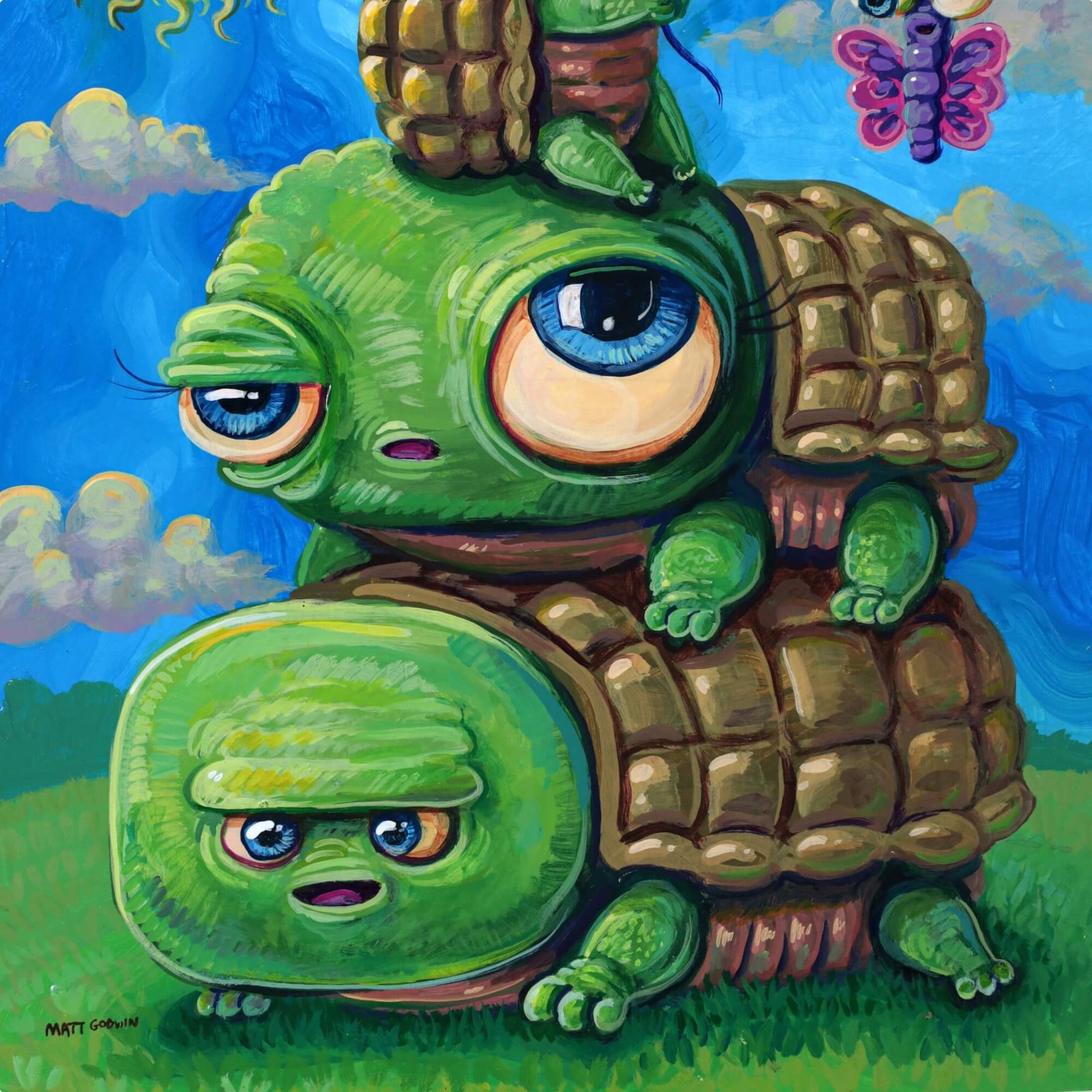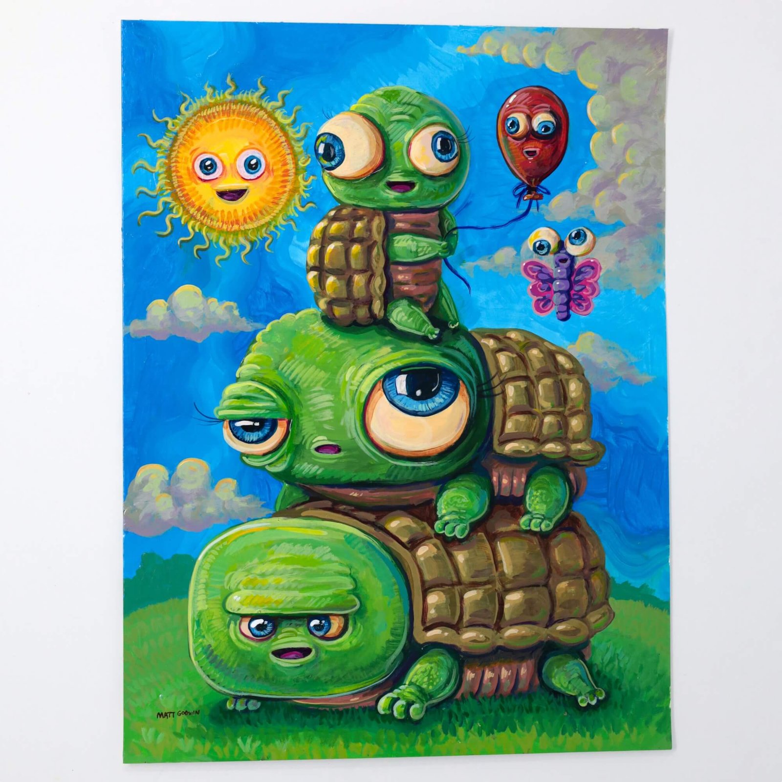 “Stack Of Turtles” original acrylic painting on paper by Matt Godwin 9″x12″
